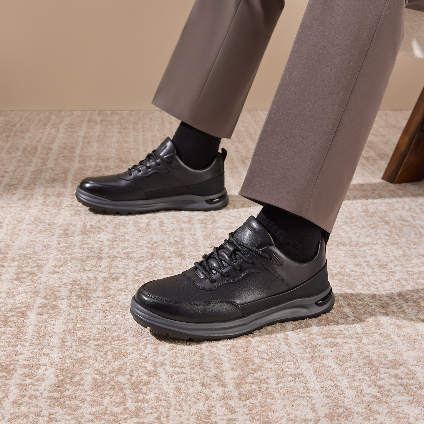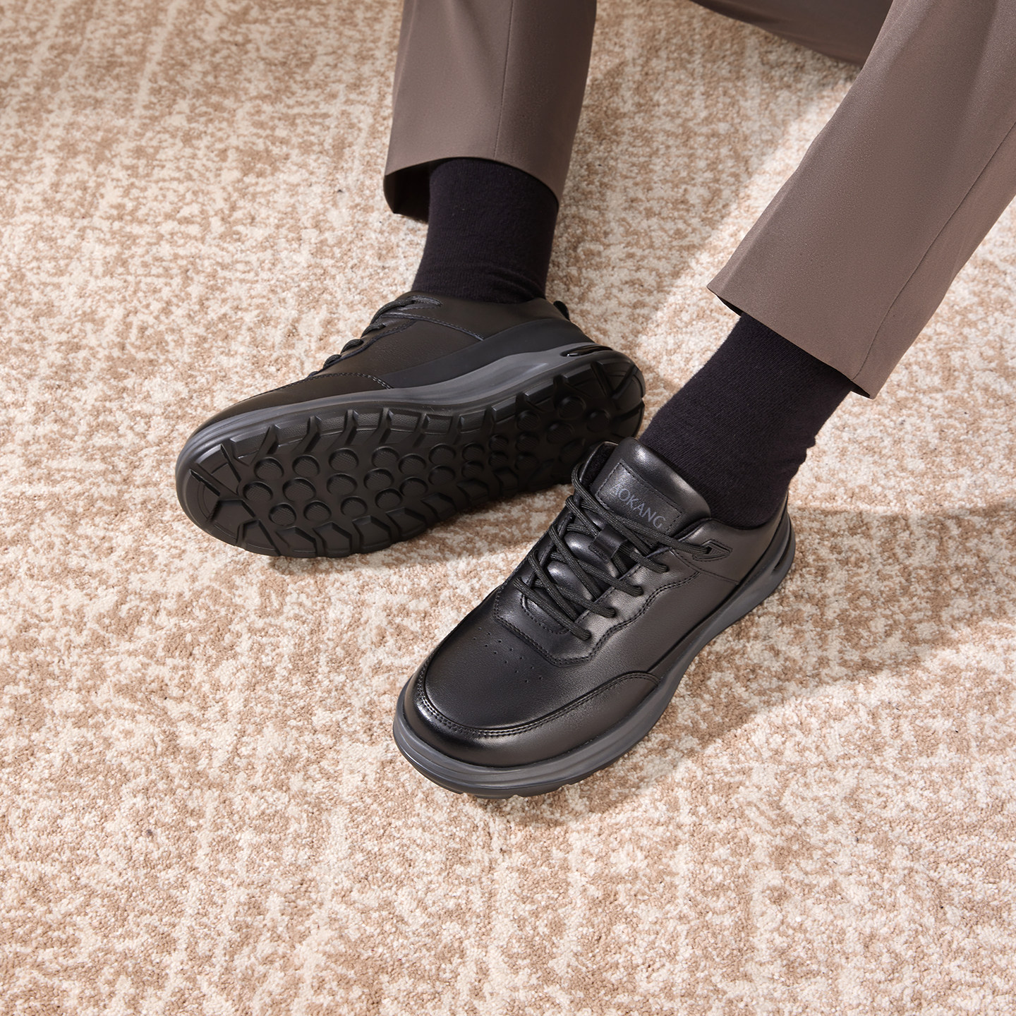 奥康 2025冬季新款男鞋休闲运动鞋通勤黑色皮鞋加绒保暖工作鞋