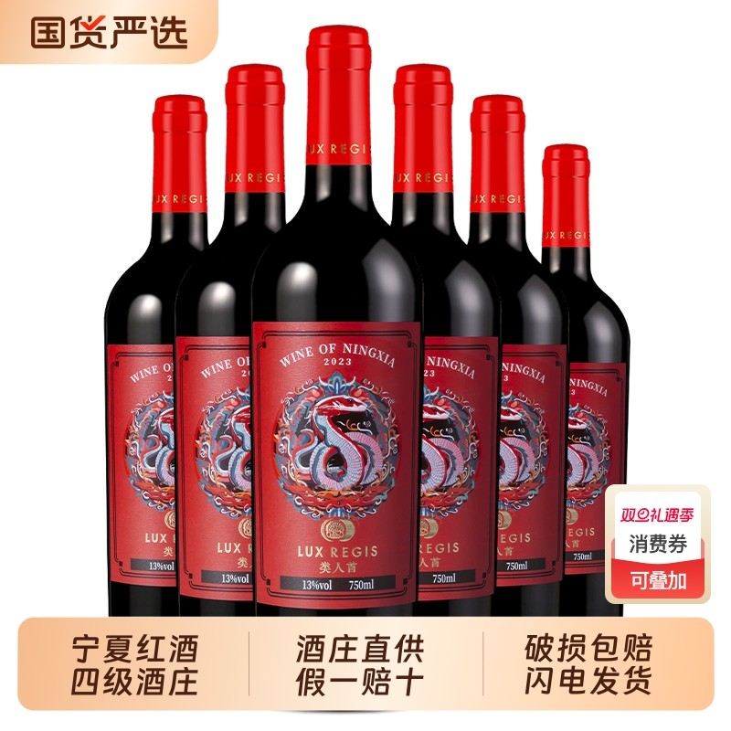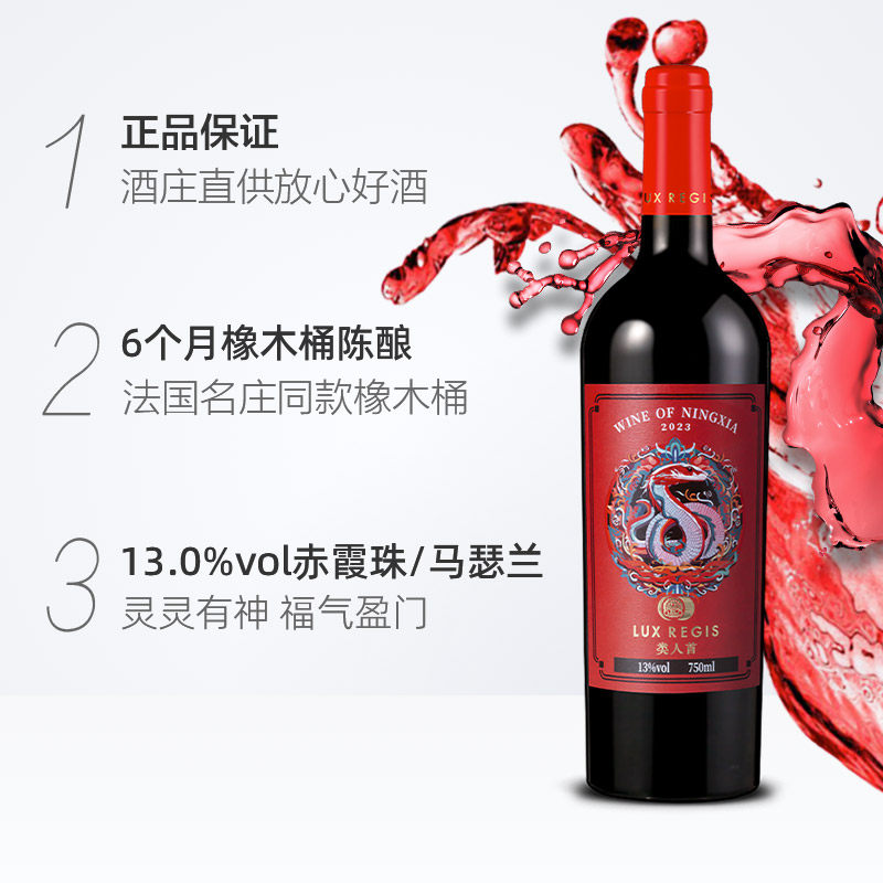 类人首 宁夏红酒 灵蛇橡木桶生肖干红葡萄酒750ml*6送礼整箱