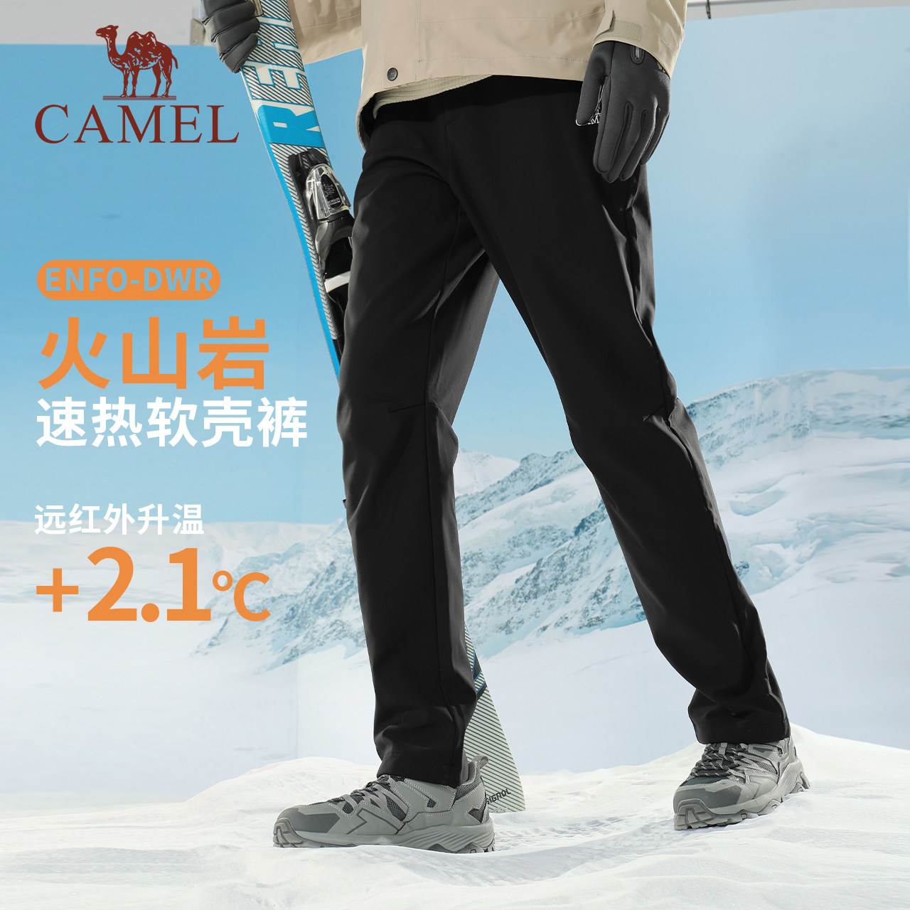 【火山岩发热】骆驼男装软壳冲锋裤2025秋冬新款加绒防泼水休闲裤