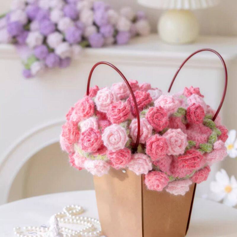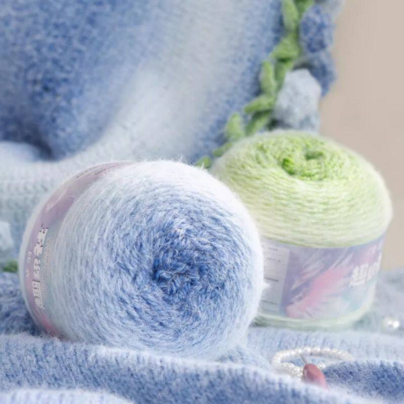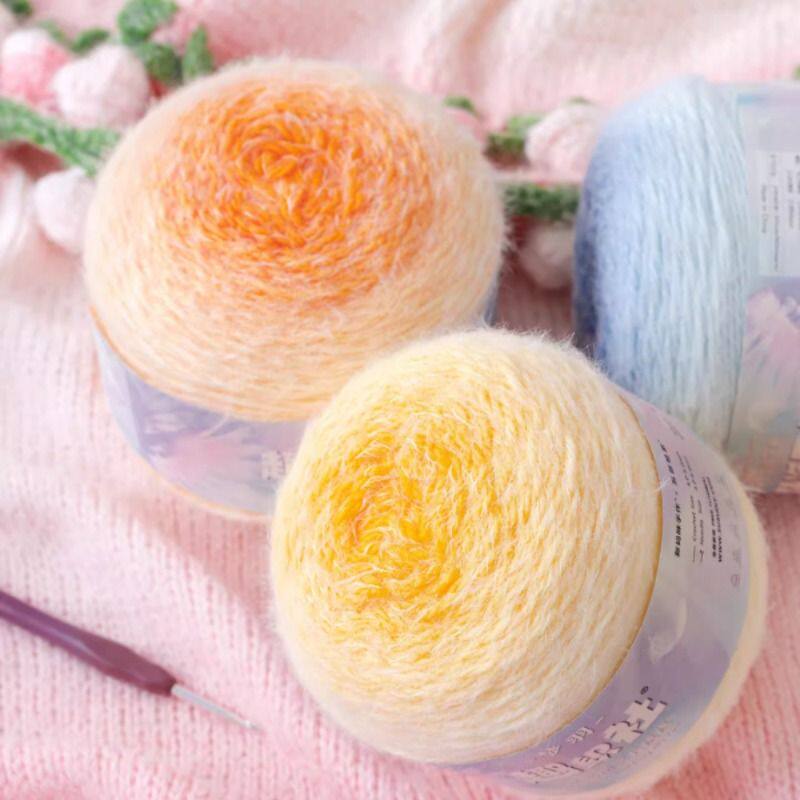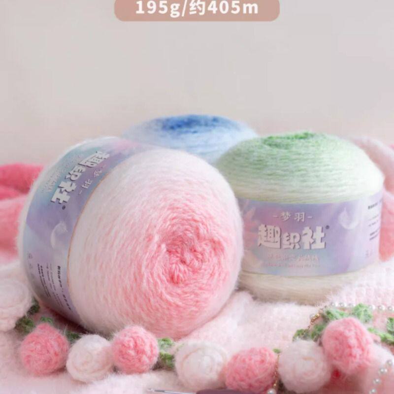 新妈咪手作梦羽渐变玫瑰花毯子段染手工编织diy钩针帽子围巾