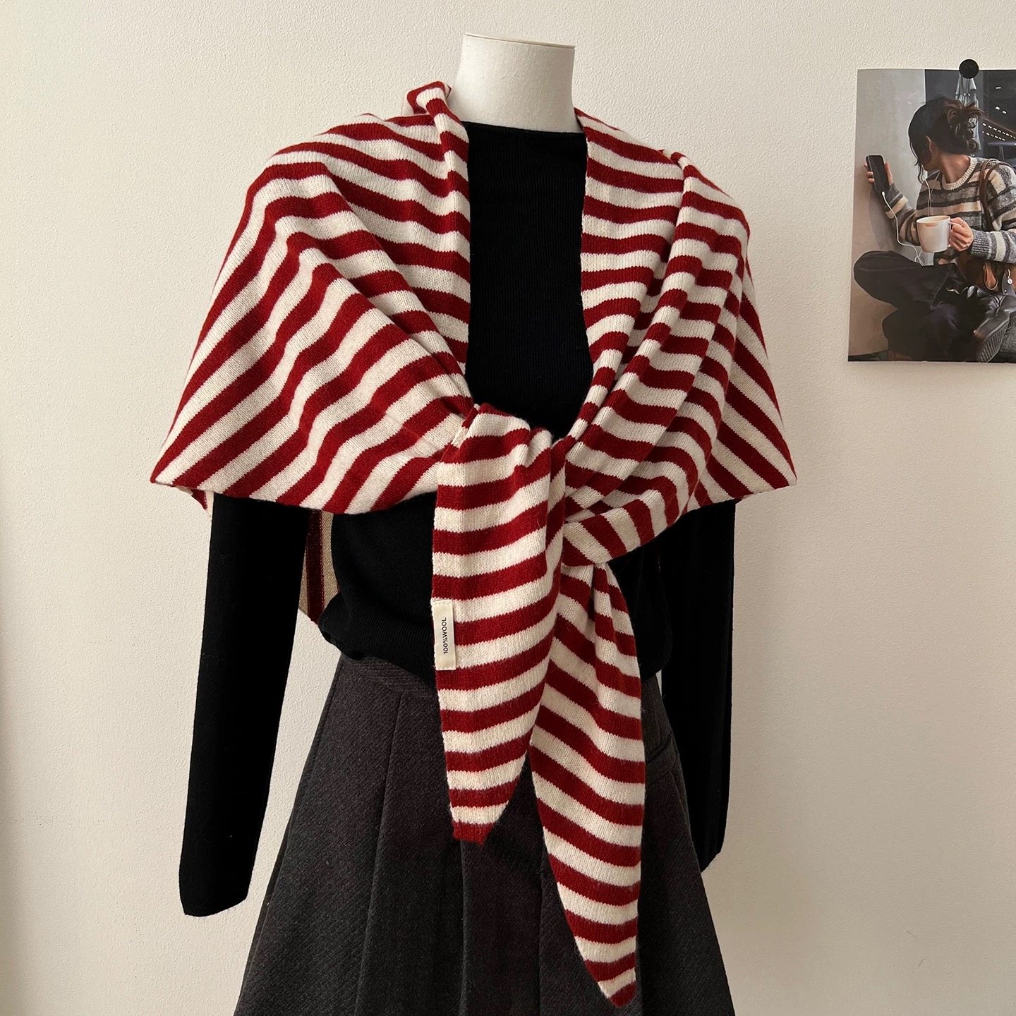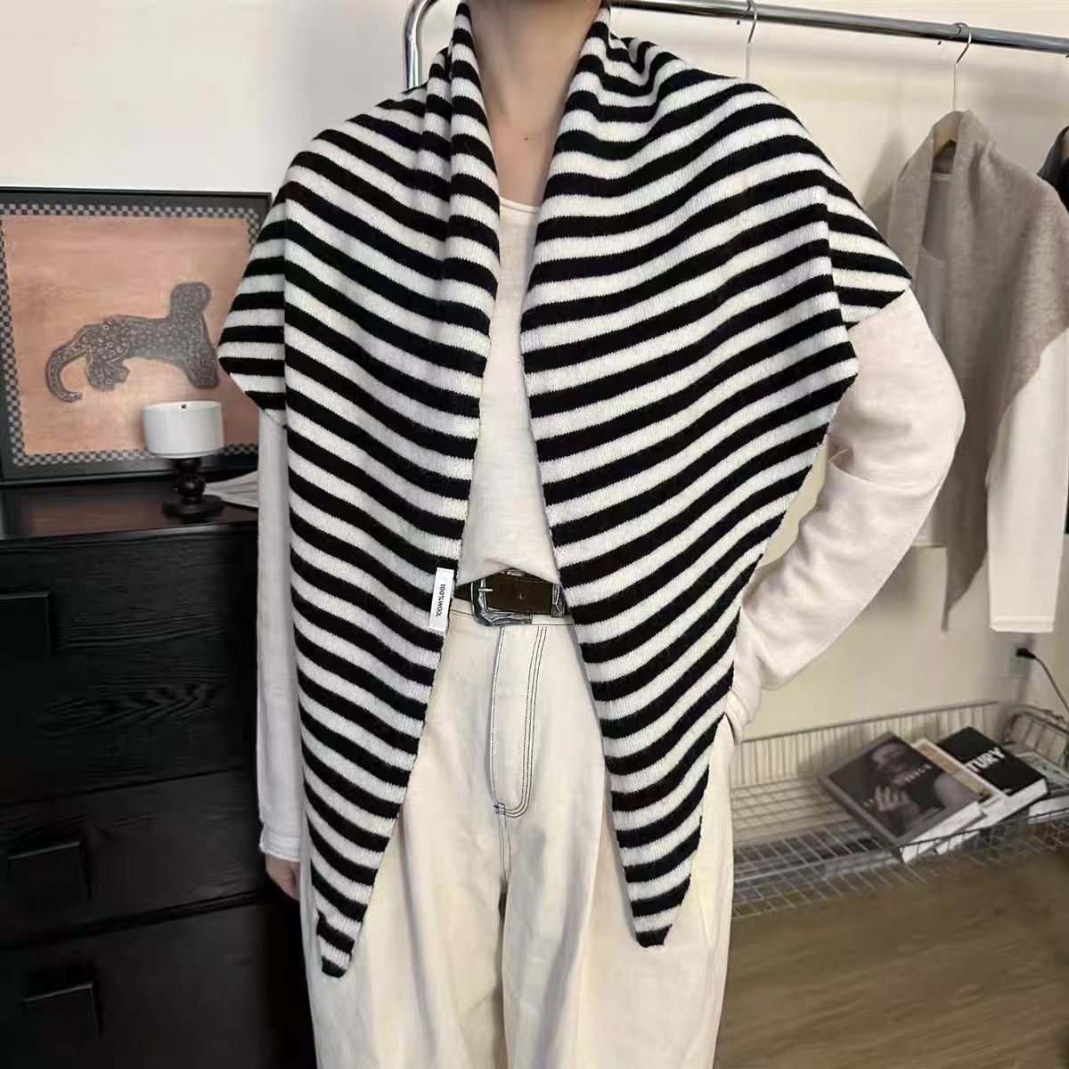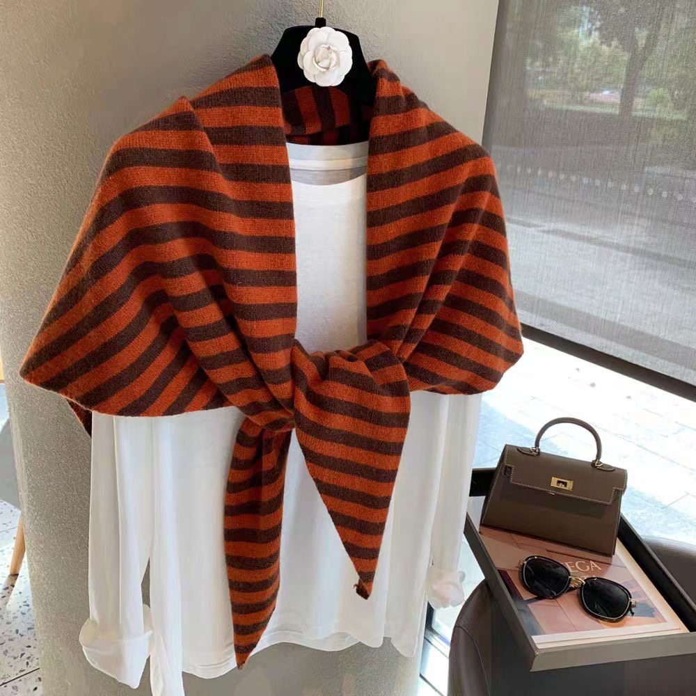 澳洲羊毛wool100%披肩加大秋冬条纹保暖三角巾针织围巾女三角形