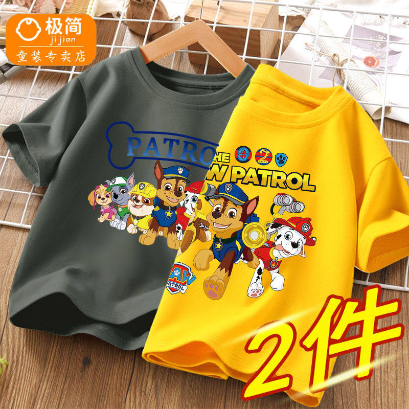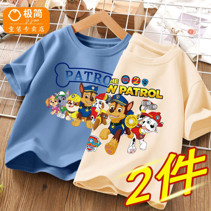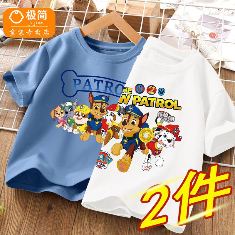 汪汪队衣服男童纯棉短袖T恤2024新款夏季儿童宝宝半袖上衣卡通潮t