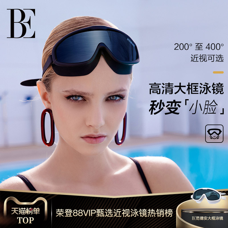 【倪妮同款】BE范德安大框泳镜高清防雾防水近视游泳眼镜带度数