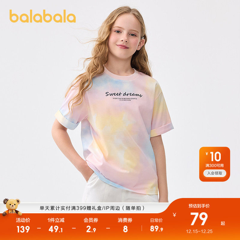 巴拉巴拉儿童短袖女童t恤夏装大童甜美晕染凉感抗菌印花上衣时尚