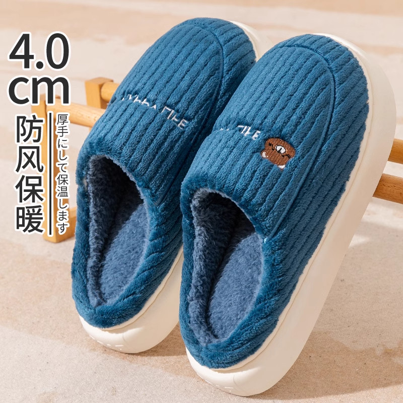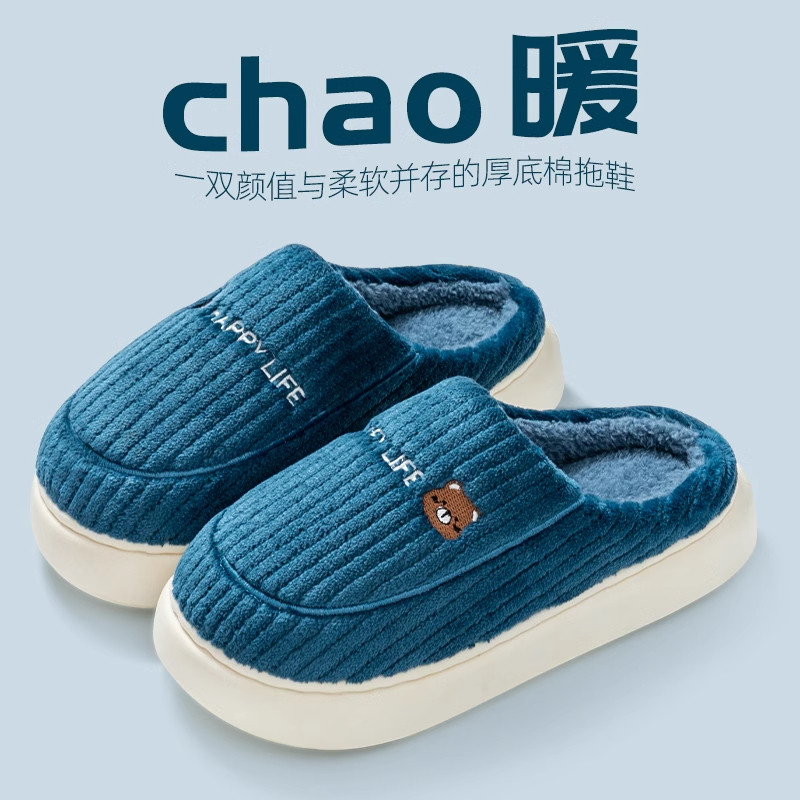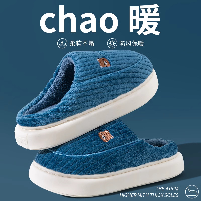 朴西棉拖鞋女士秋冬季厚底简约保暖室内居家用软底防滑情侣棉拖男