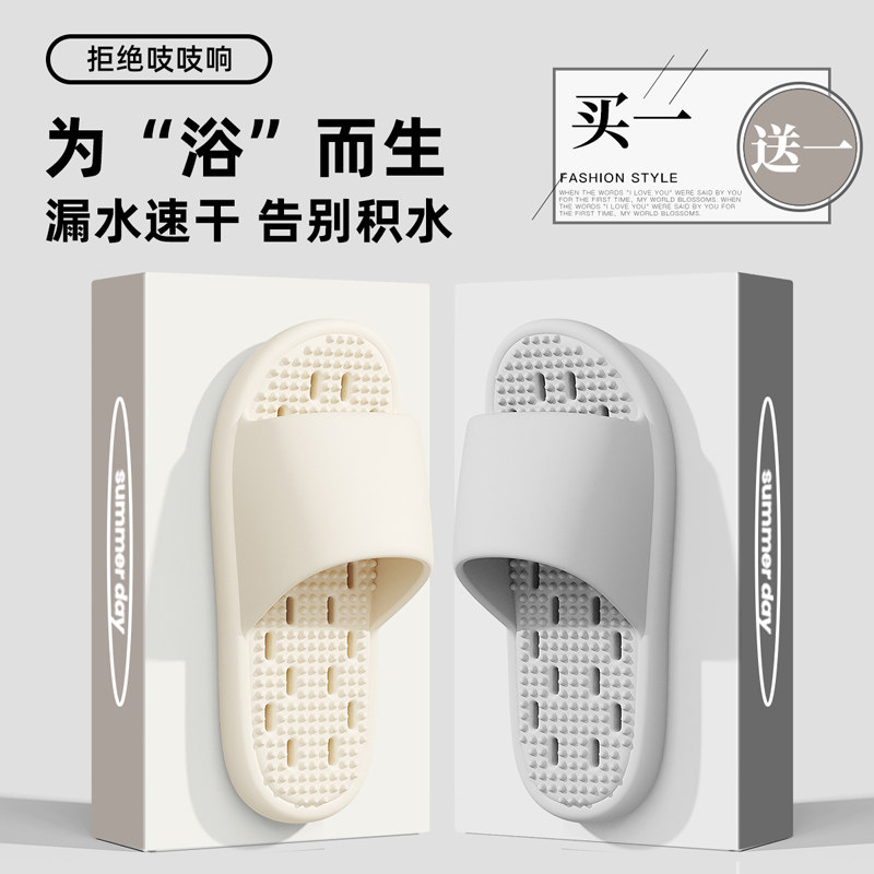 红豆买1送1浴室洗澡拖鞋女款家居室内情侣一对防滑速干漏水凉拖男
