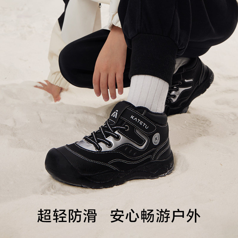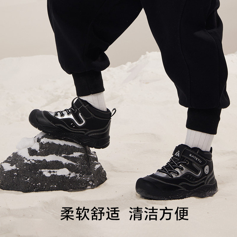 卡特兔童鞋户外高帮儿童运动鞋2025冬季新款加绒靴子防滑儿童棉鞋