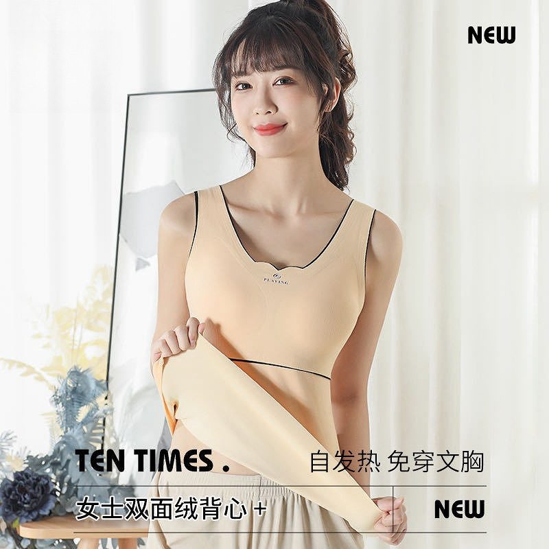 张雨绮|曲线主义保暖背心女塑身内搭冬带胸垫磨毛胸罩一体式内衣