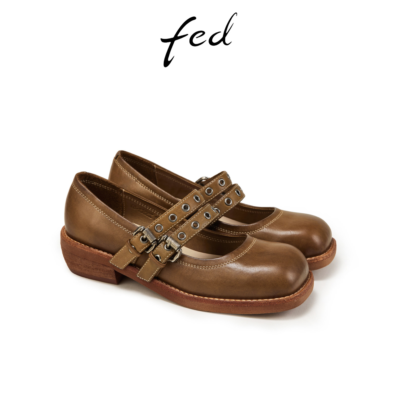 【水洗马皮】fed复古玛丽珍鞋春季新款女鞋粗跟单鞋D1128-ZFA095
