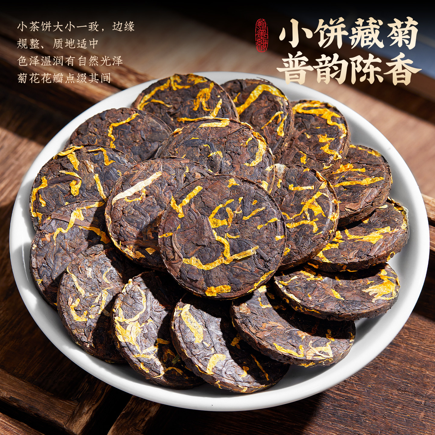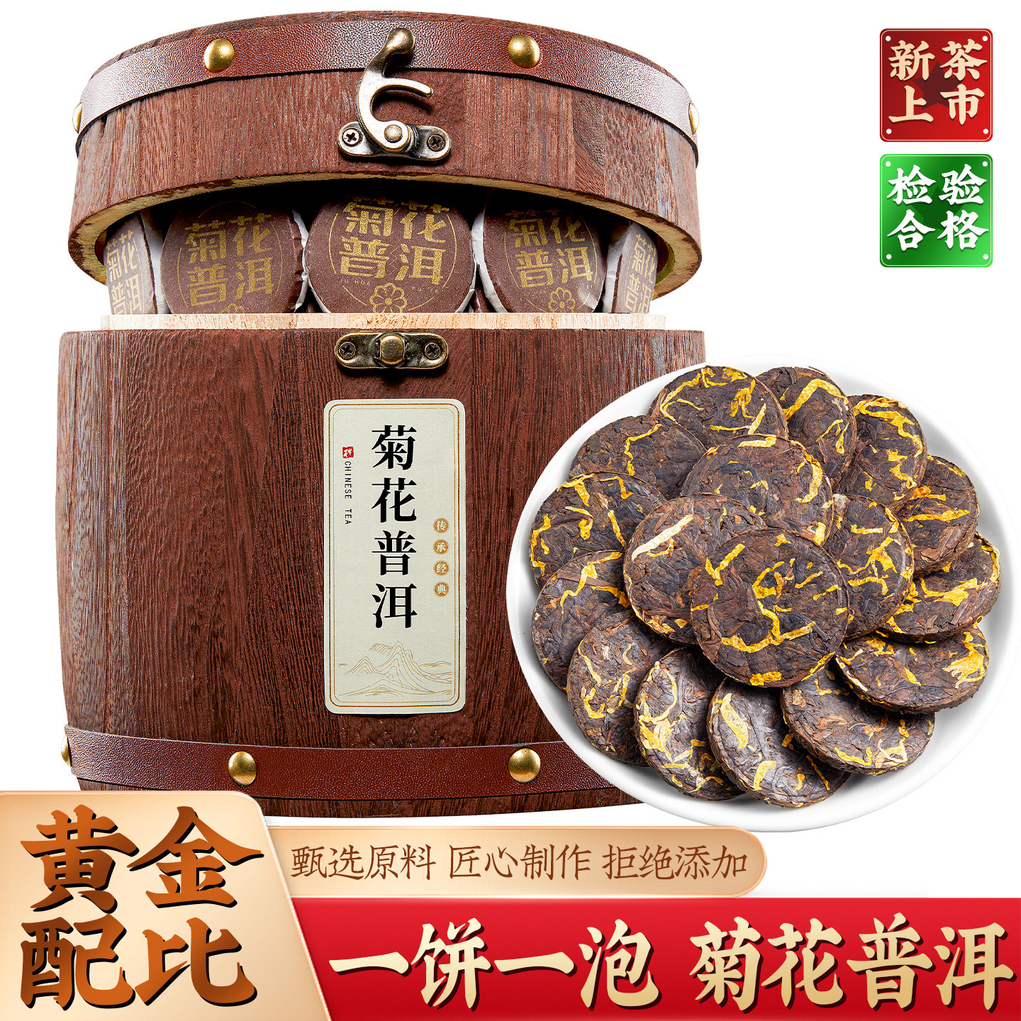 正宗云南菊花普洱茶云勐海古树宫廷普洱茶熟茶菊花茶饼礼盒装500g