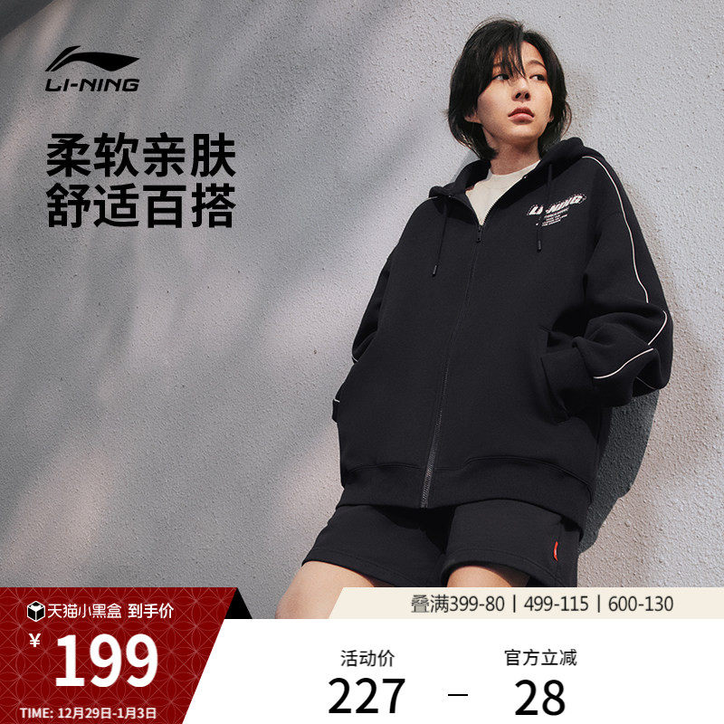 李宁外套女冬季情侣上衣连帽衫长袖条纹拉链卫衣美式运动夹克男款