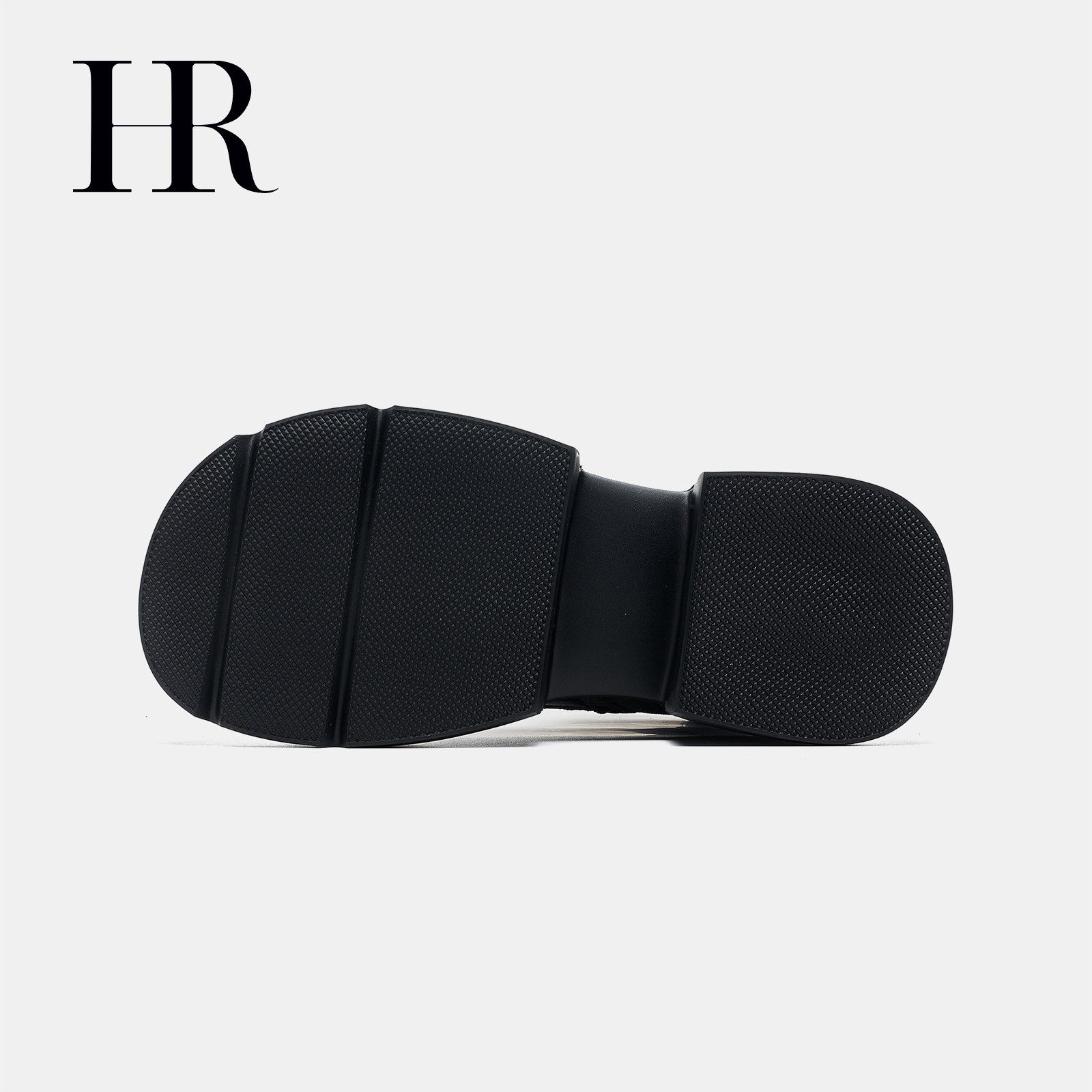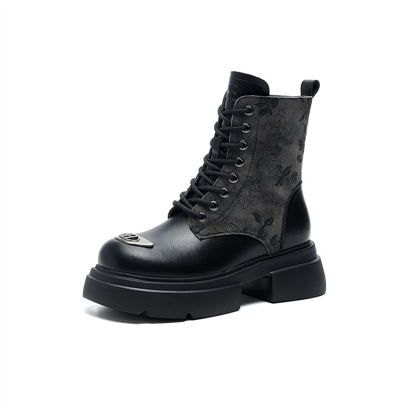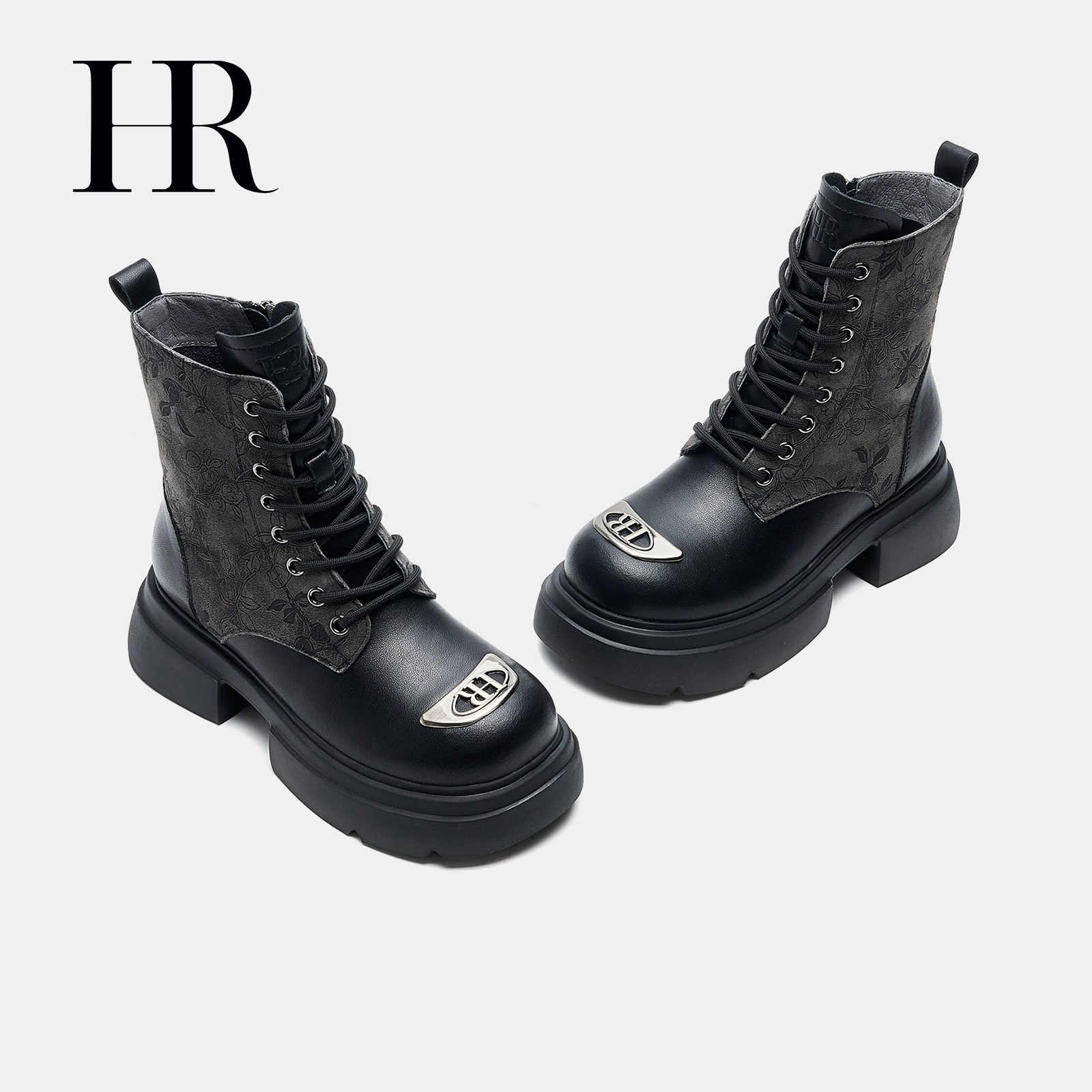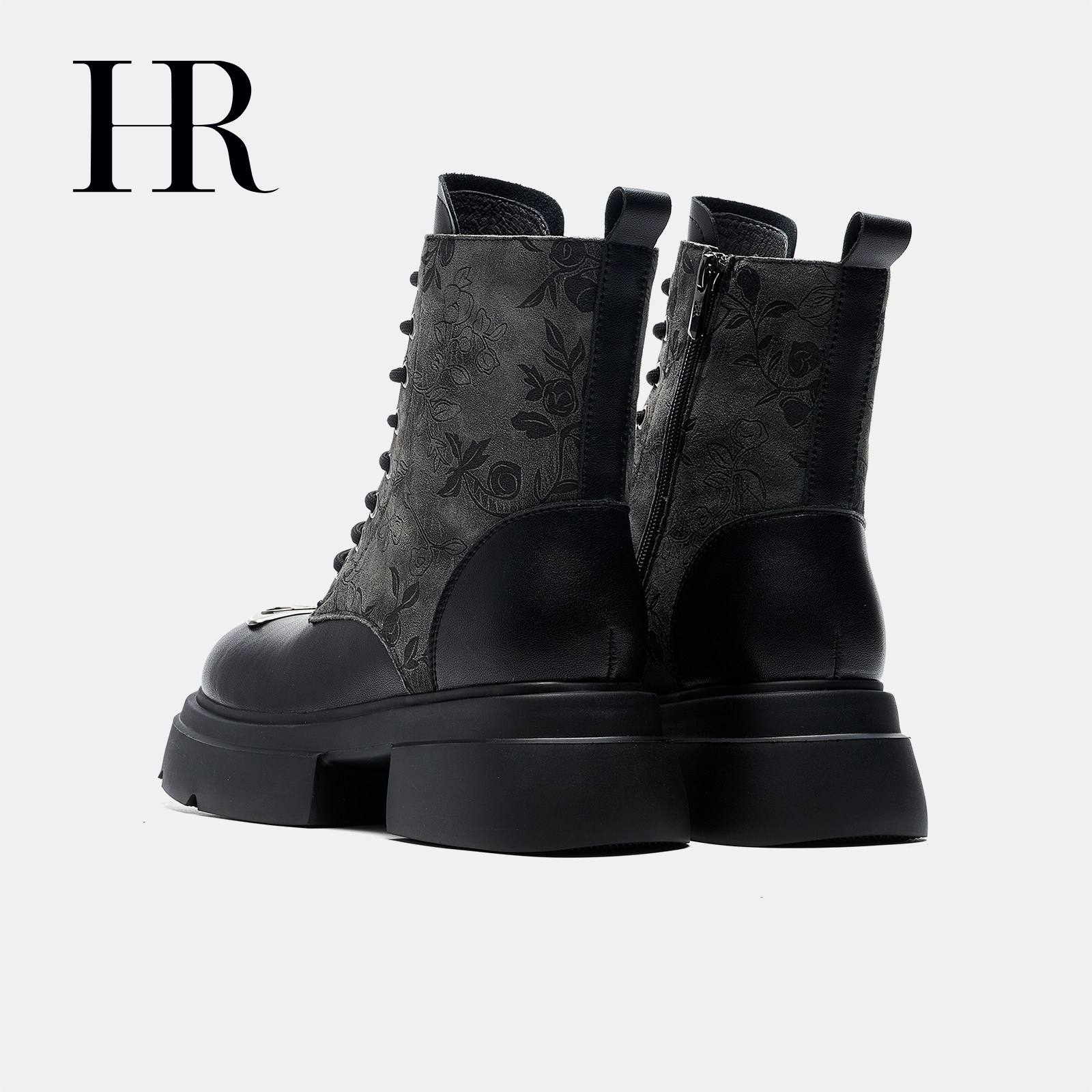HR赫莲娜女鞋子2025秋季新款马丁靴圆头银饰小众复古印花原创短靴