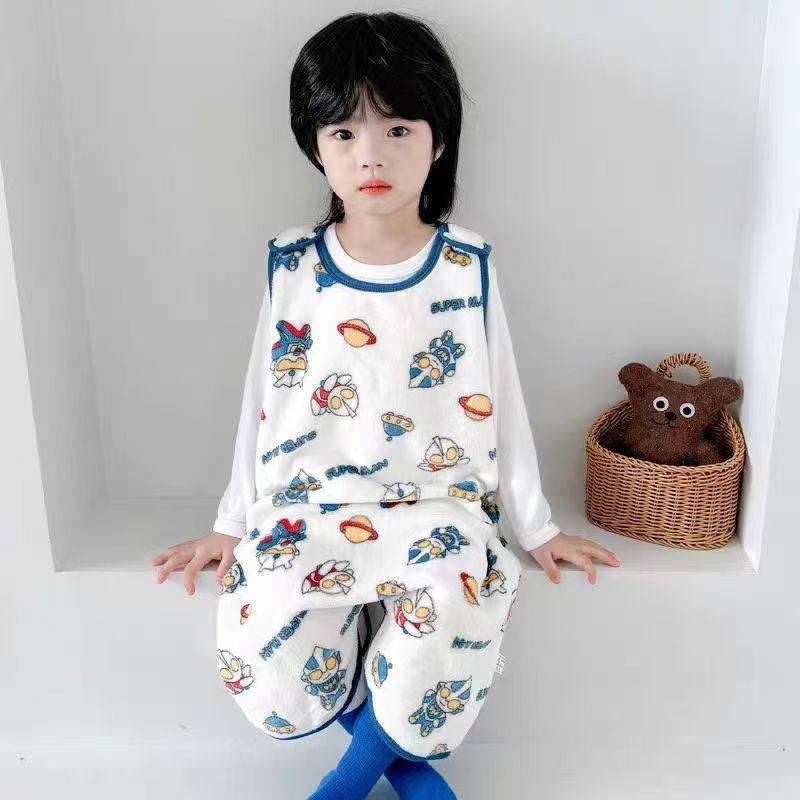 睡袋宝宝秋冬款法兰绒背心冬季加绒儿童马甲婴儿连体睡衣珊瑚绒