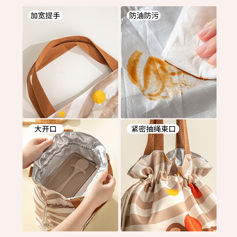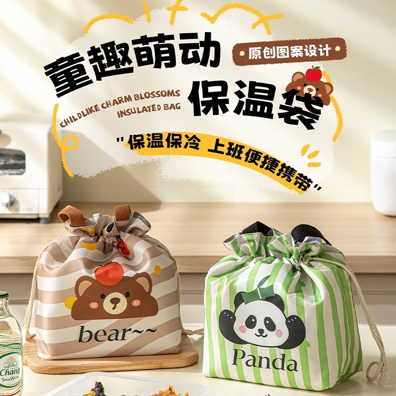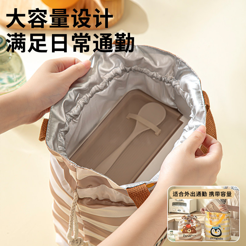 新款卡通便当袋手提包便携上班族大容量高颜值外出野餐保温饭盒子