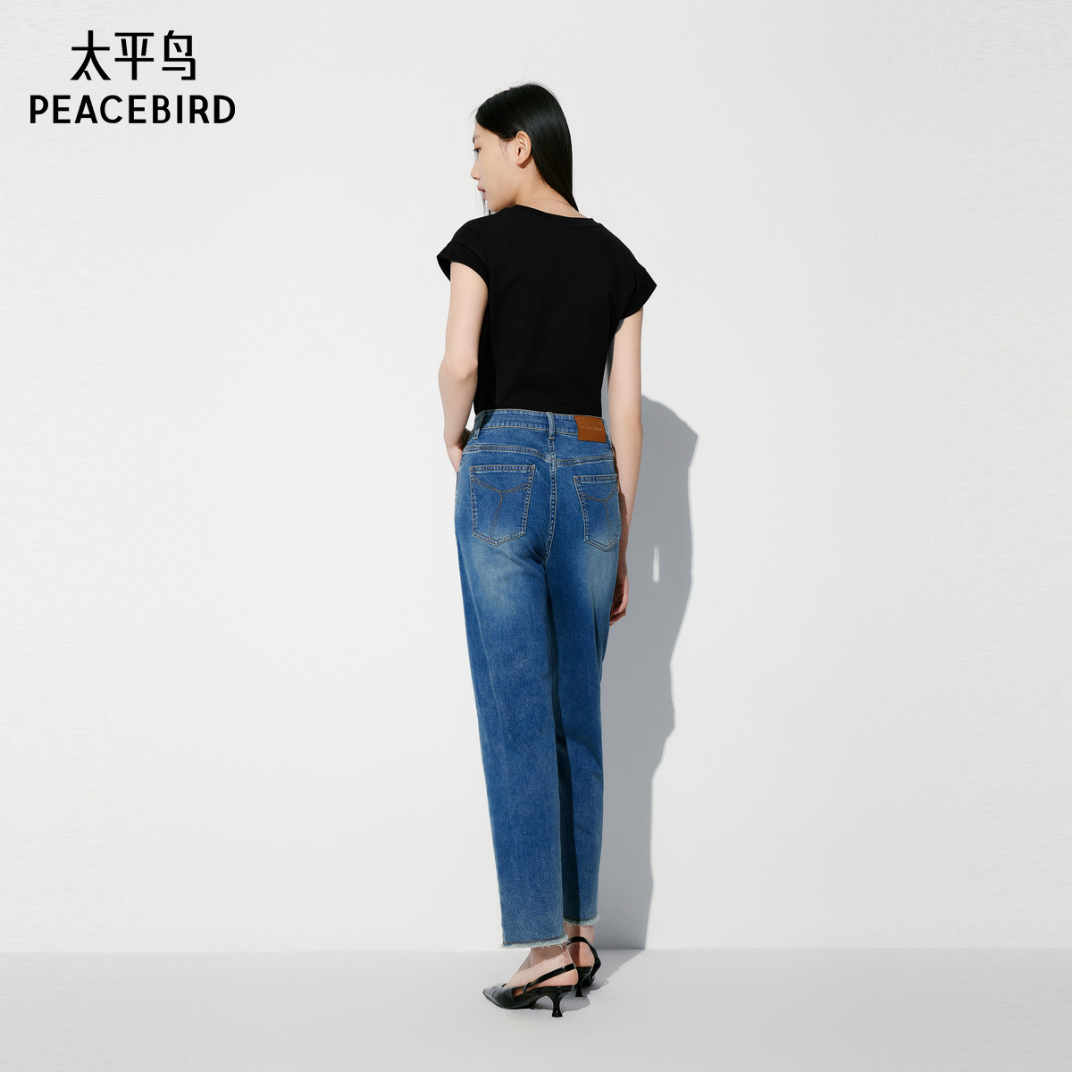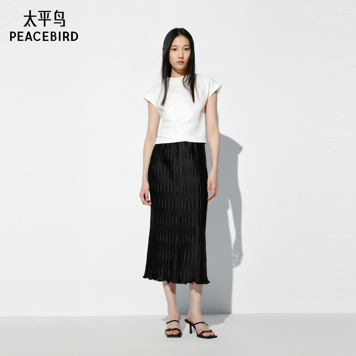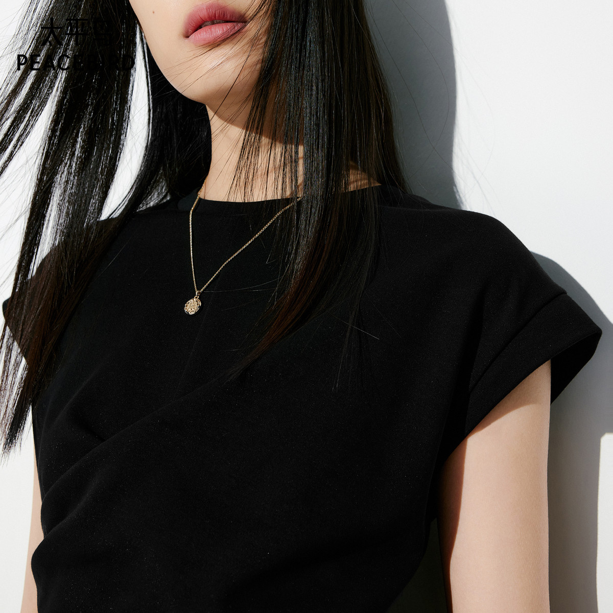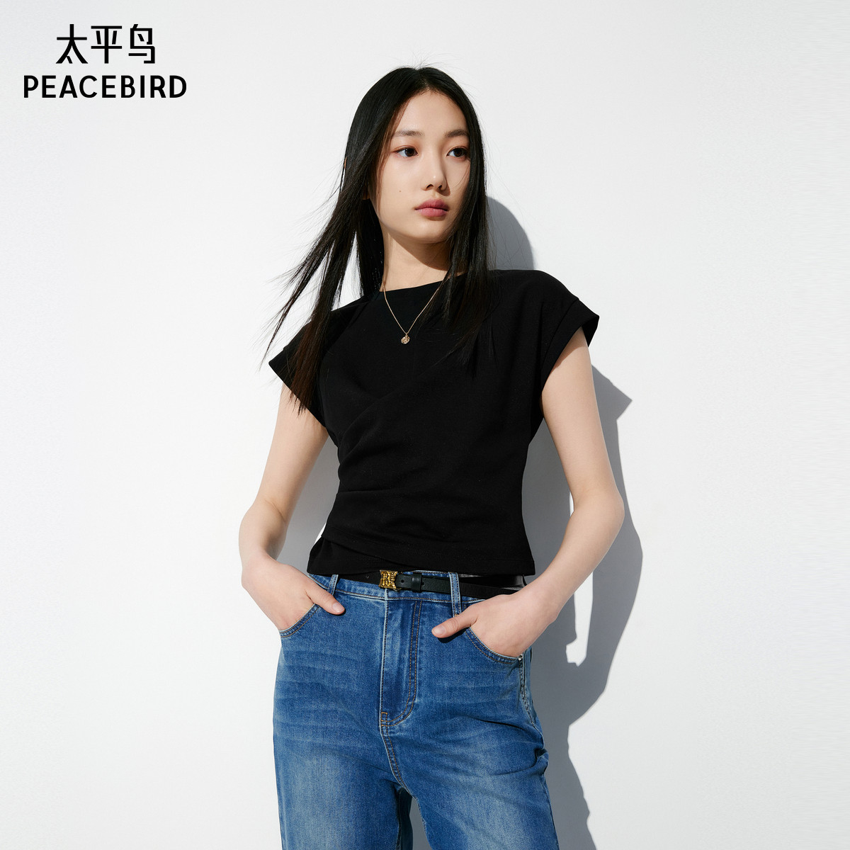 太平鸟围裹小飞袖T恤女短袖夏新款合身短款简约通勤上衣扭结