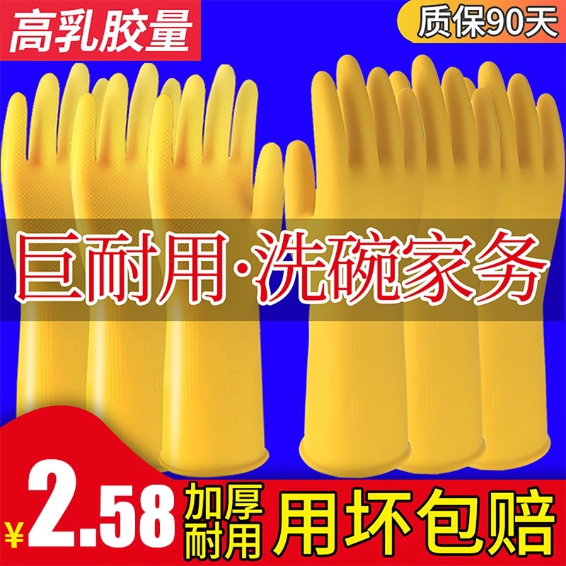 胶手套橡胶耐磨防水乳胶厨房洗碗女加厚胶皮家务牛筋耐用劳保清洁