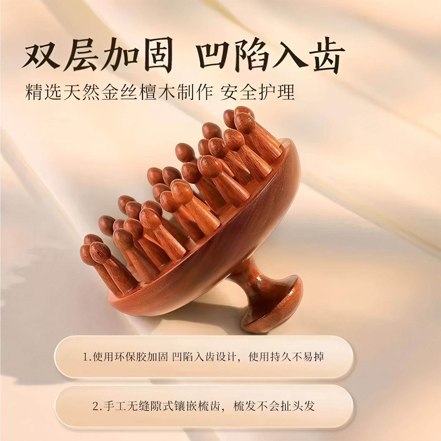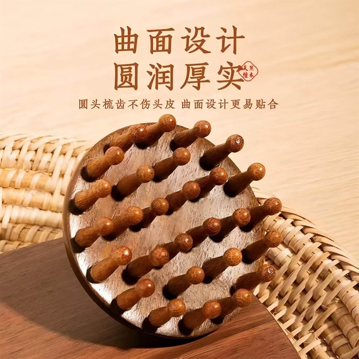 金丝檀木圆盘按摩梳头部头皮经络梳毛囊疏通神器养发保健宽齿梳子
