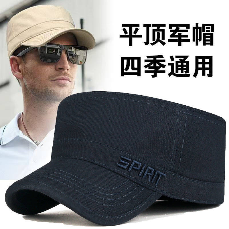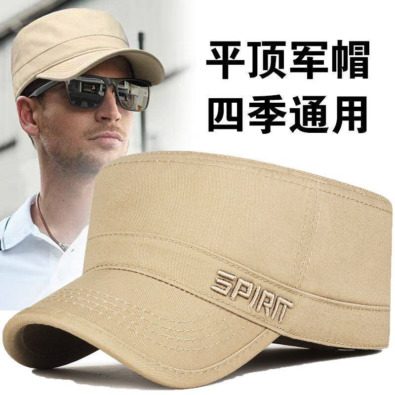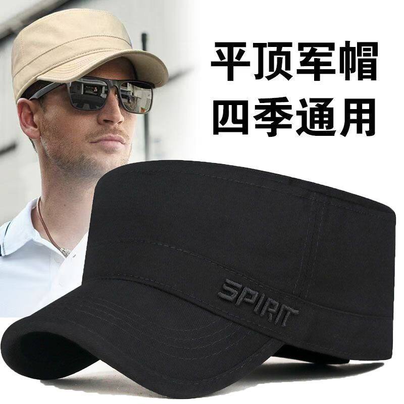 男士新款封口春秋平顶帽子防晒调节纯棉鸭舌帽休闲遮阳中老年刺绣
