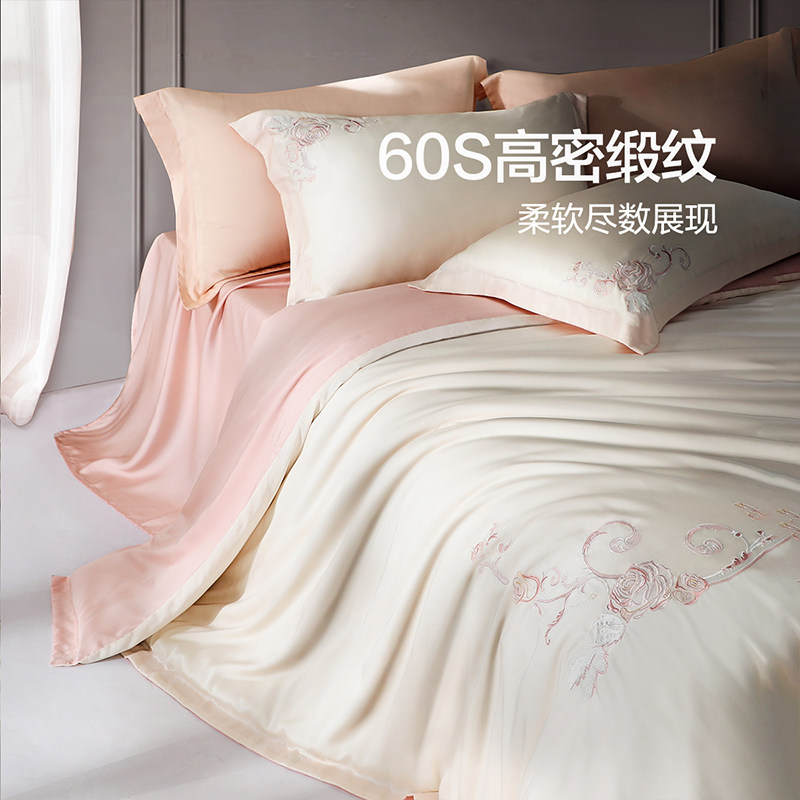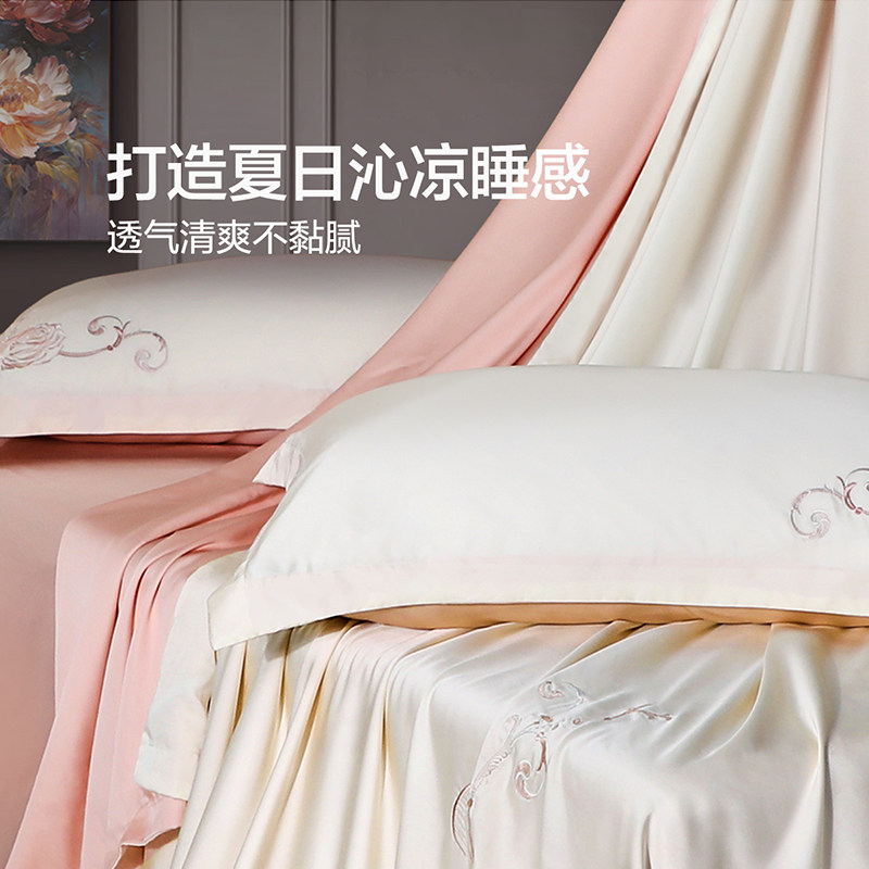 富安娜家纺莱赛尔天丝套件冰丝床单被套凉感丝滑裸睡四件套春夏季