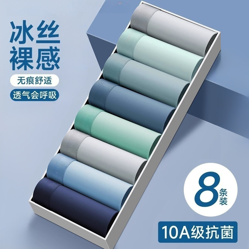 冰丝男士内裤夏季透气网孔四角裤男生潮流个性运动平角短裤头抗菌