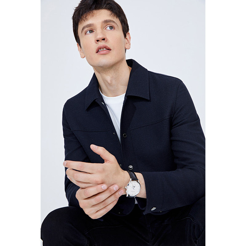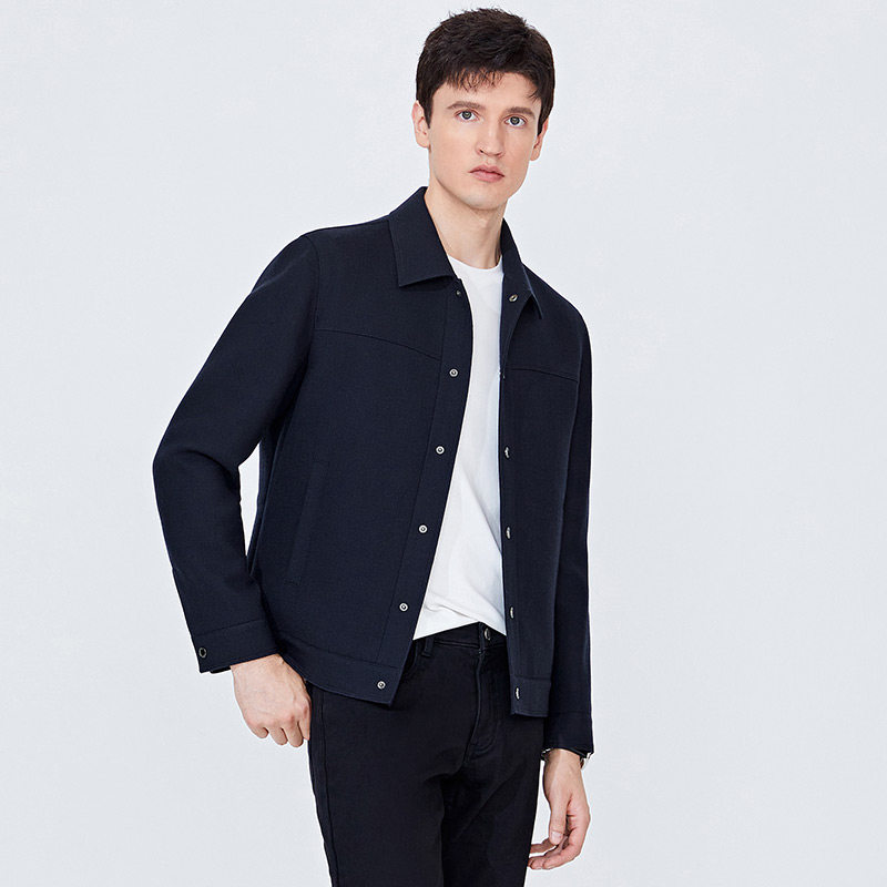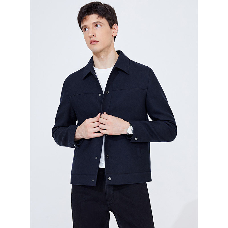 [羊毛]Navigare意大利小帆船秋季蓝色夹克男新款休闲翻领毛呢外套