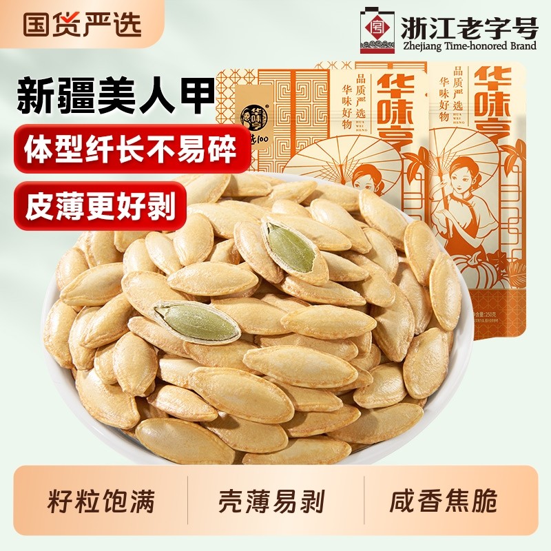 华味亨新疆美人甲南瓜子椒盐长粒熟原味坚果炒货新货大颗粒老字号