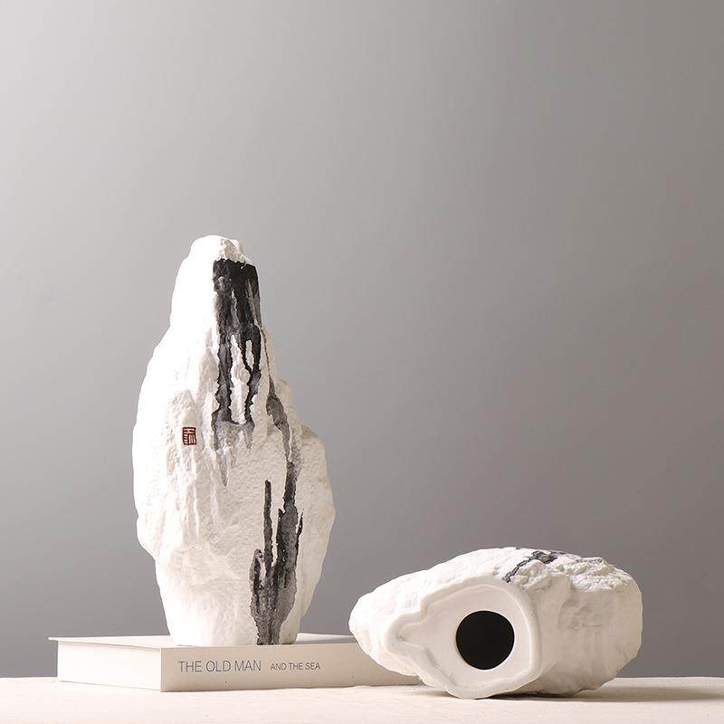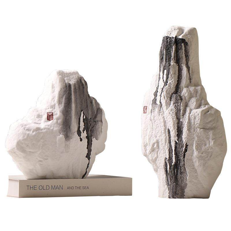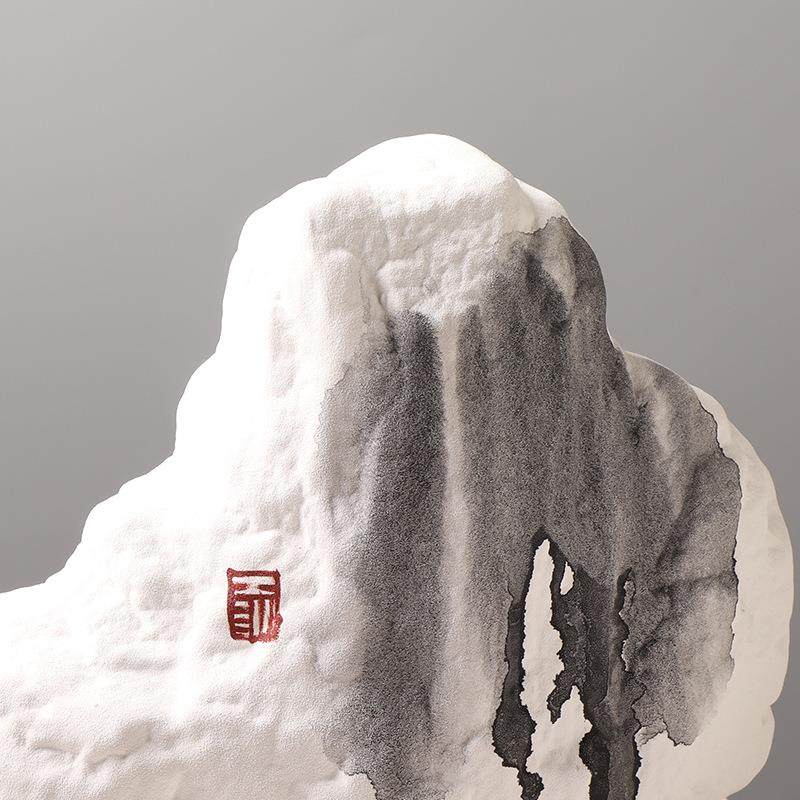 新中式创意陶瓷假山摆件书房茶室水墨画装饰品样板房设计师款软装
