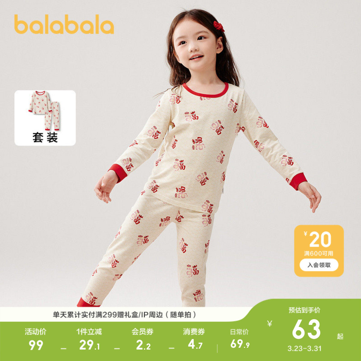 巴拉巴拉童装儿童内衣裤套装春秋季新款男童内衣女童睡衣保暖衣潮