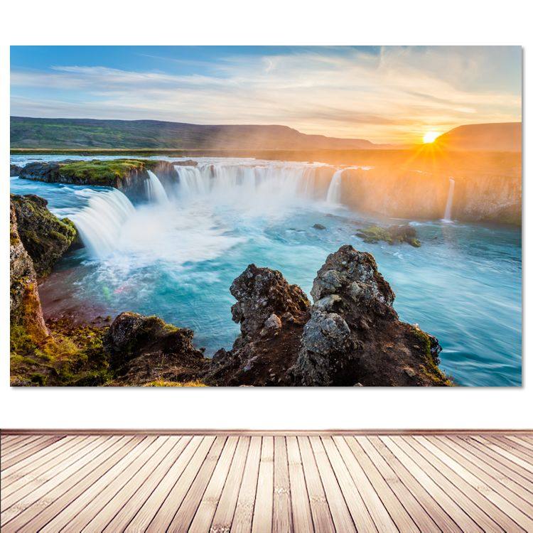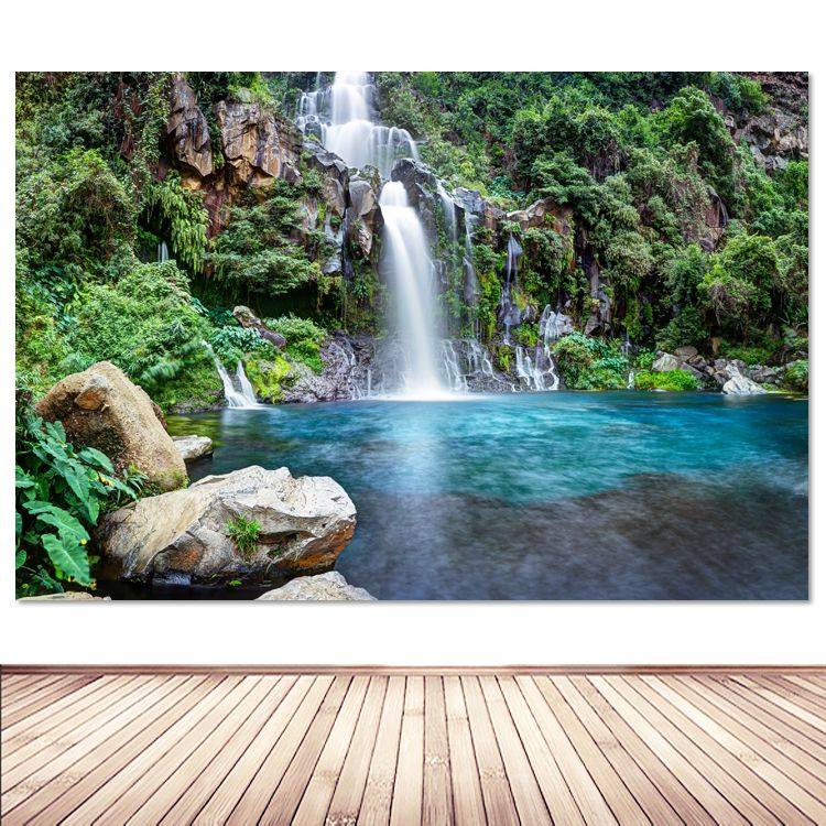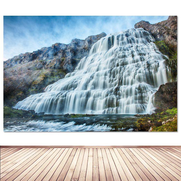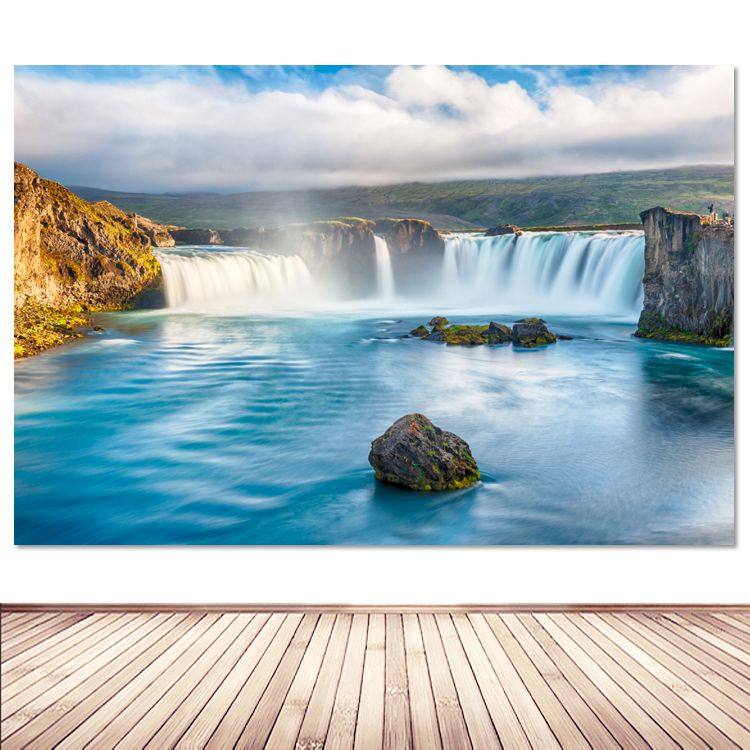瀑布海报山水画自然风景河流招财生财客厅办公室墙壁画装饰画贴画