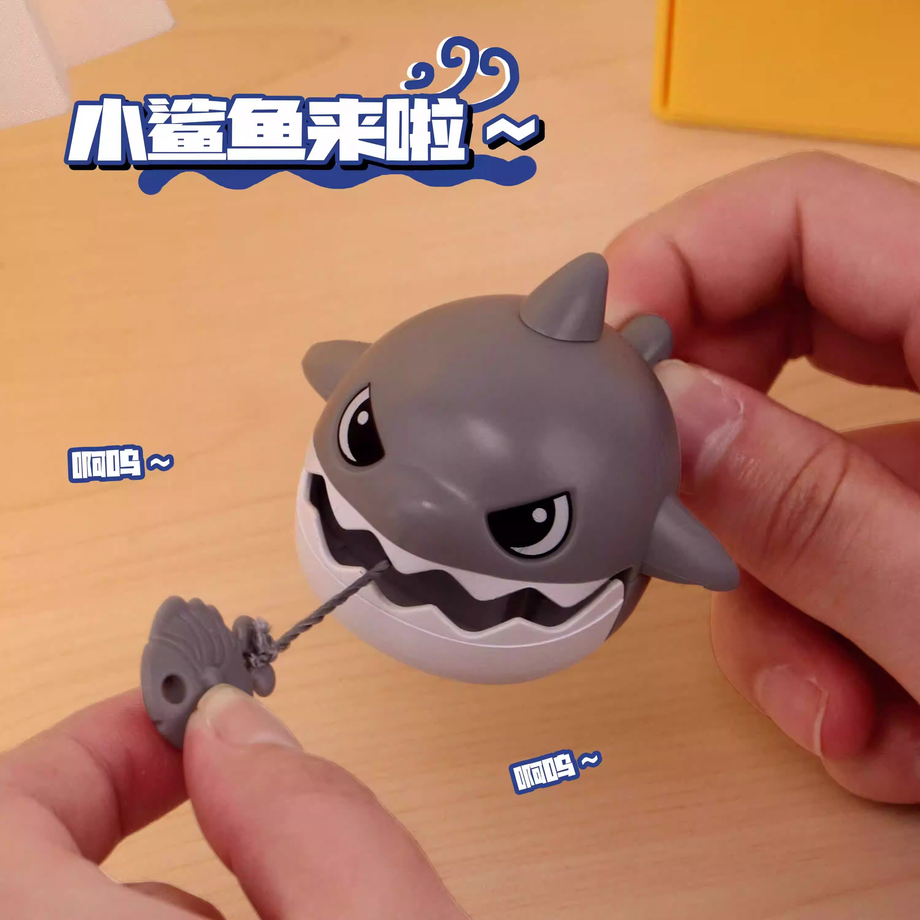 拉线咬牙小鲨鱼挂件可拉绳解压神器大鱼吃小鱼创意钥匙扣儿童玩具