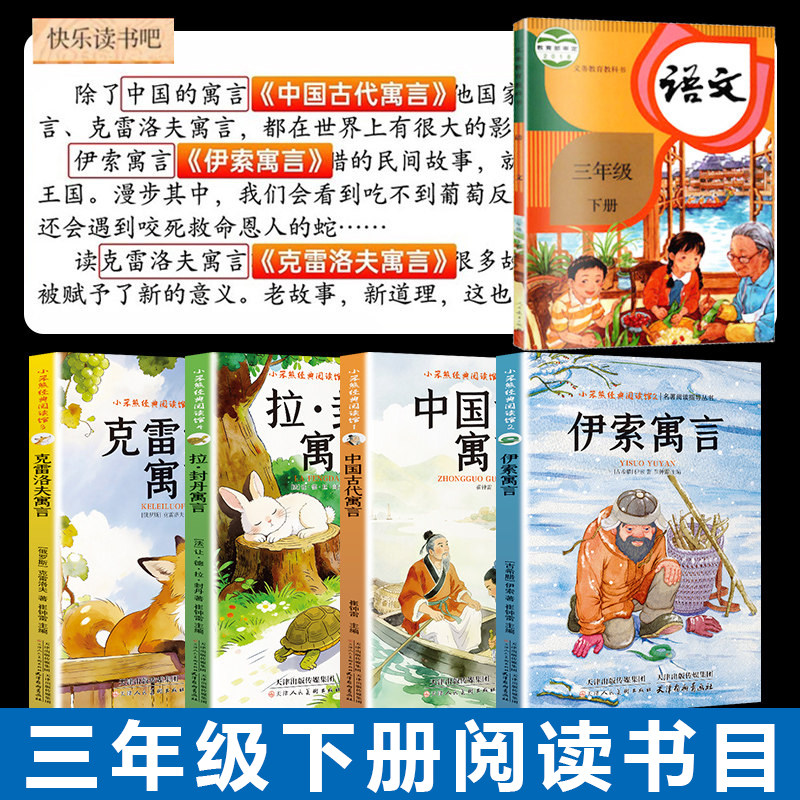 全套3册中国古代寓言故事三年级下册必读正版的课外书快乐读书吧三下阅读书籍配套人教版寒假书目伊索寓言克雷洛夫寓言拉封丹寓言
