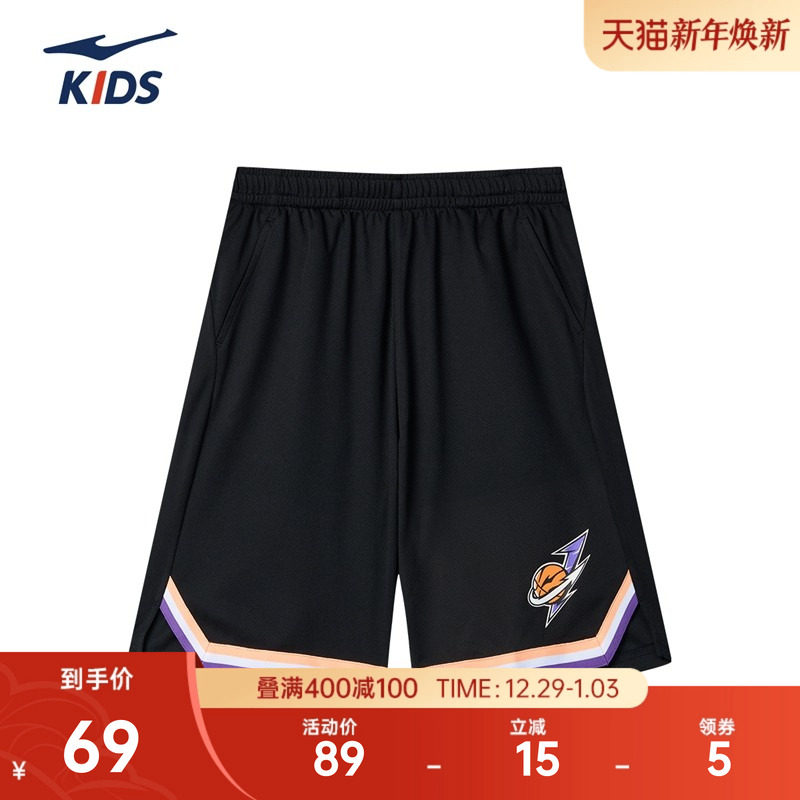 鸿星尔克儿童短裤男童2025冬季新款百搭速干五分裤中大童运动短裤