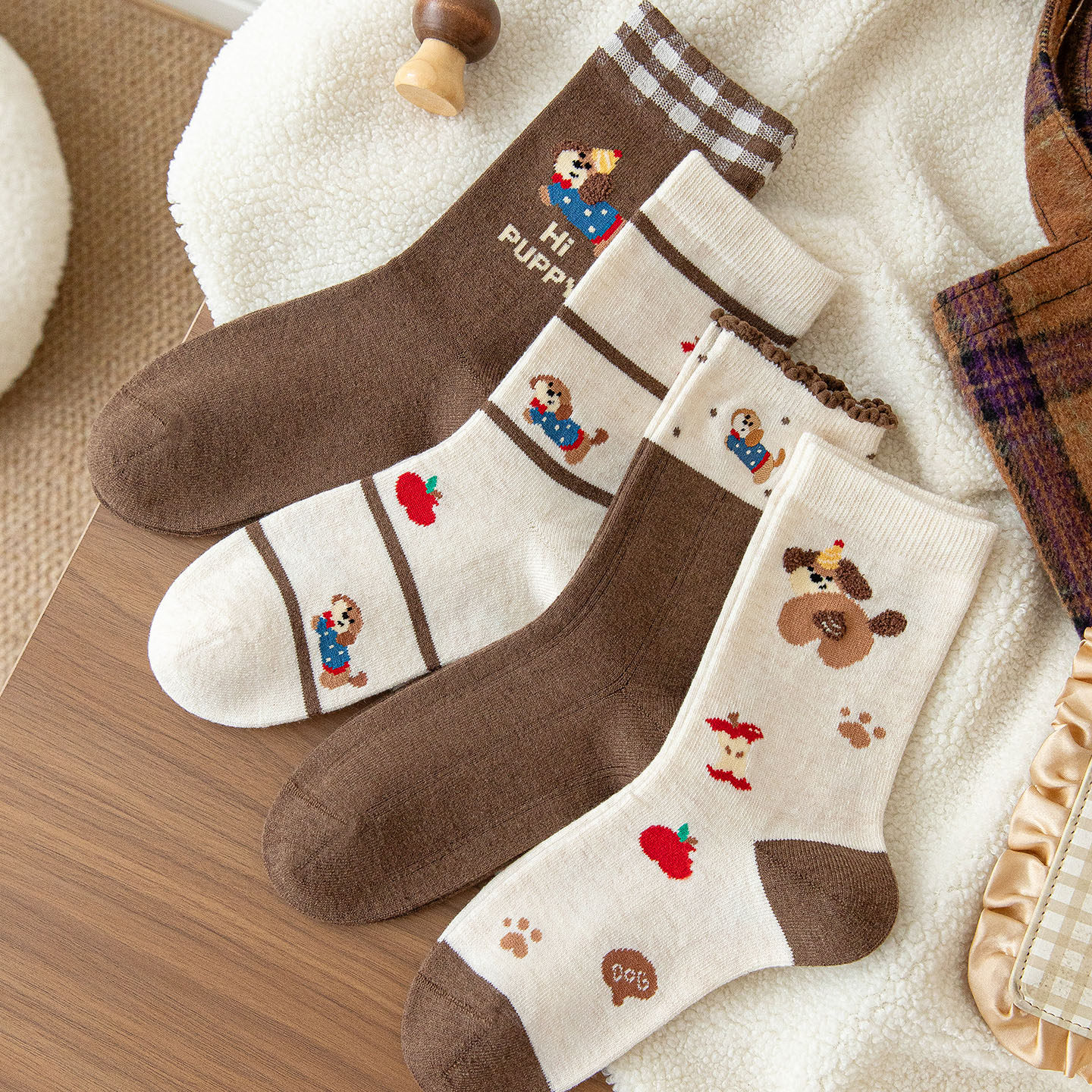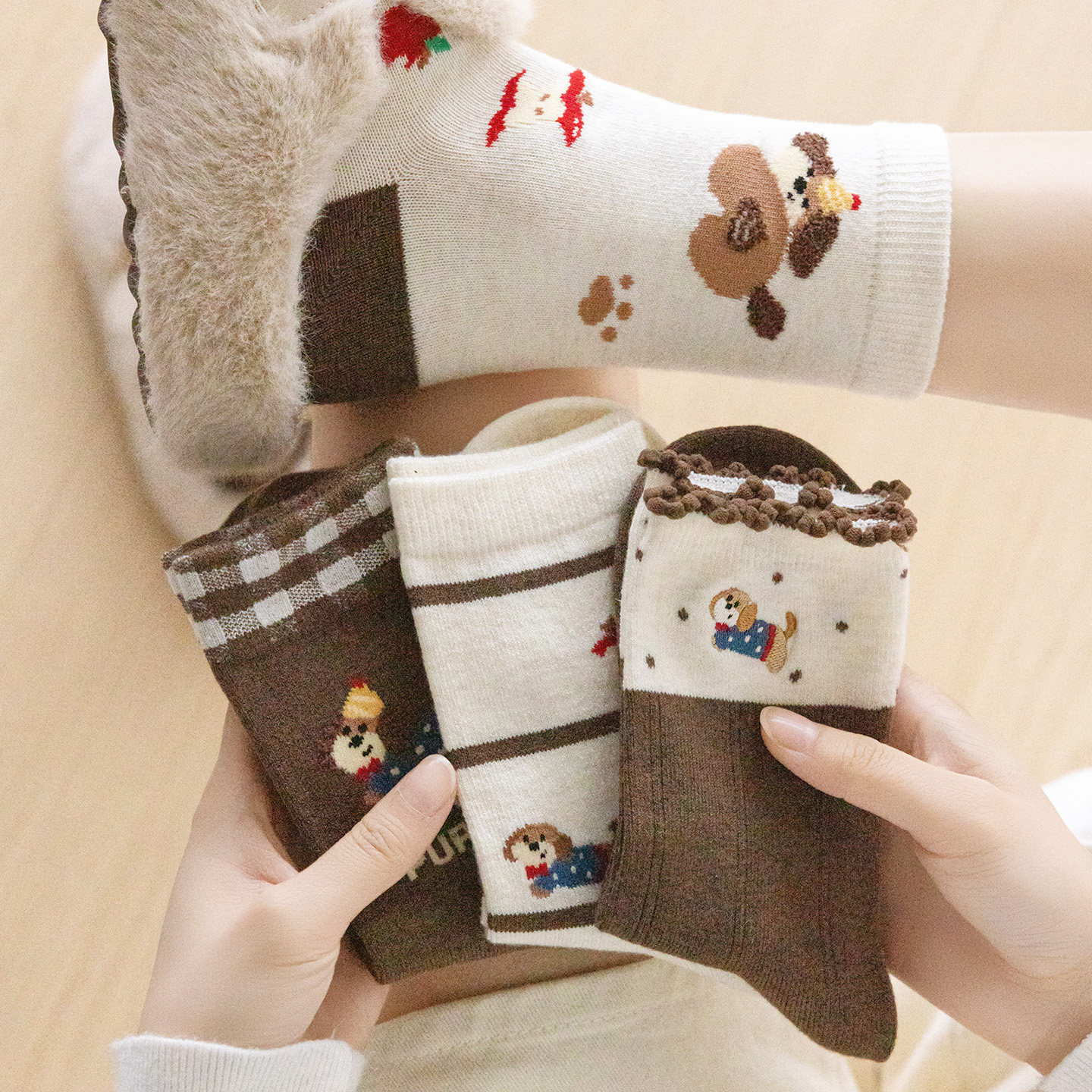 卡拉美拉秋冬新款腊肠狗中筒袜女百搭趣味舒适桑蚕丝羊毛袜袜子