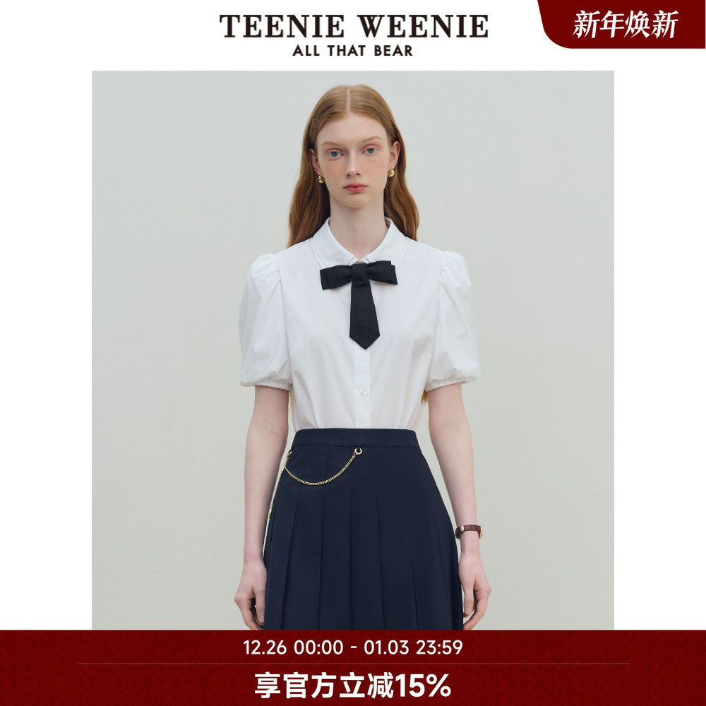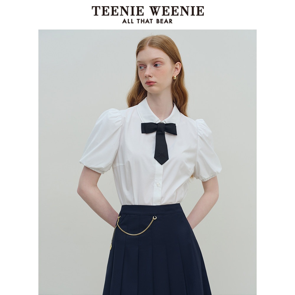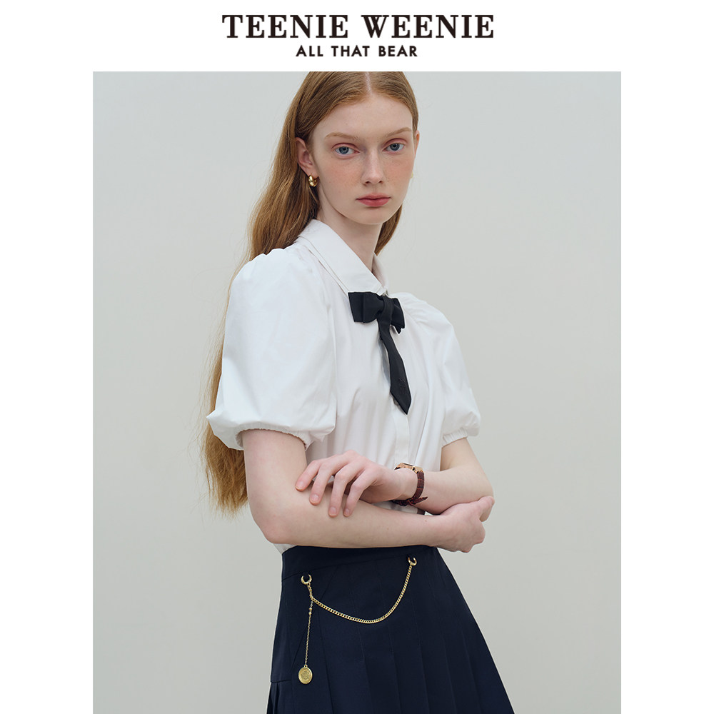 TeenieWeenie小熊奥莱女装夏季设计感法式甜美泡泡袖衬衫短款