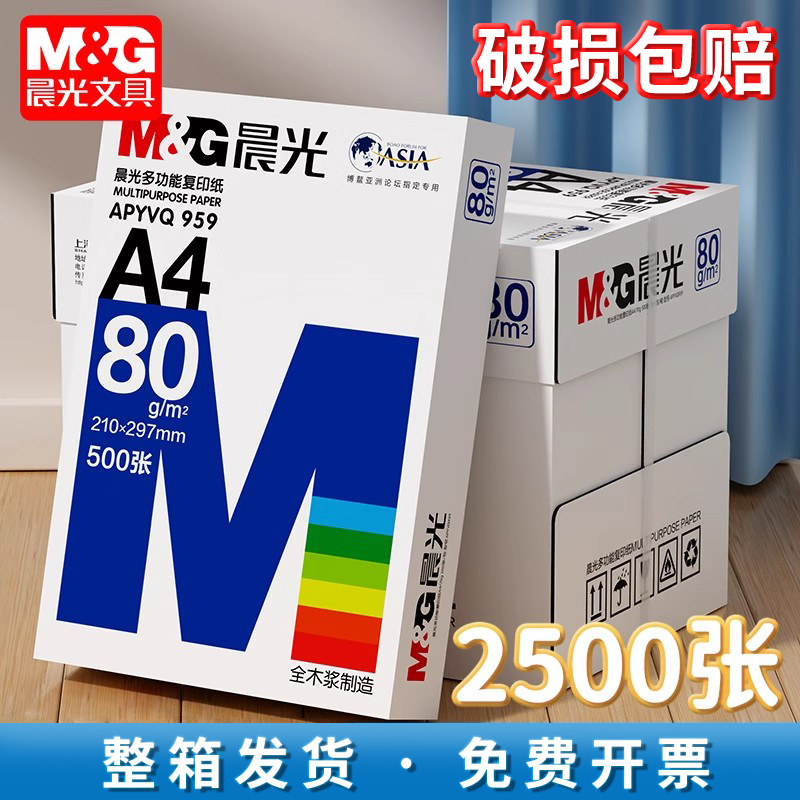 晨光A4纸70g/80g打印纸复印纸全木浆500页2500页草稿学生用办公用品a4纸打印白纸整箱5包装白色a4打印纸包邮