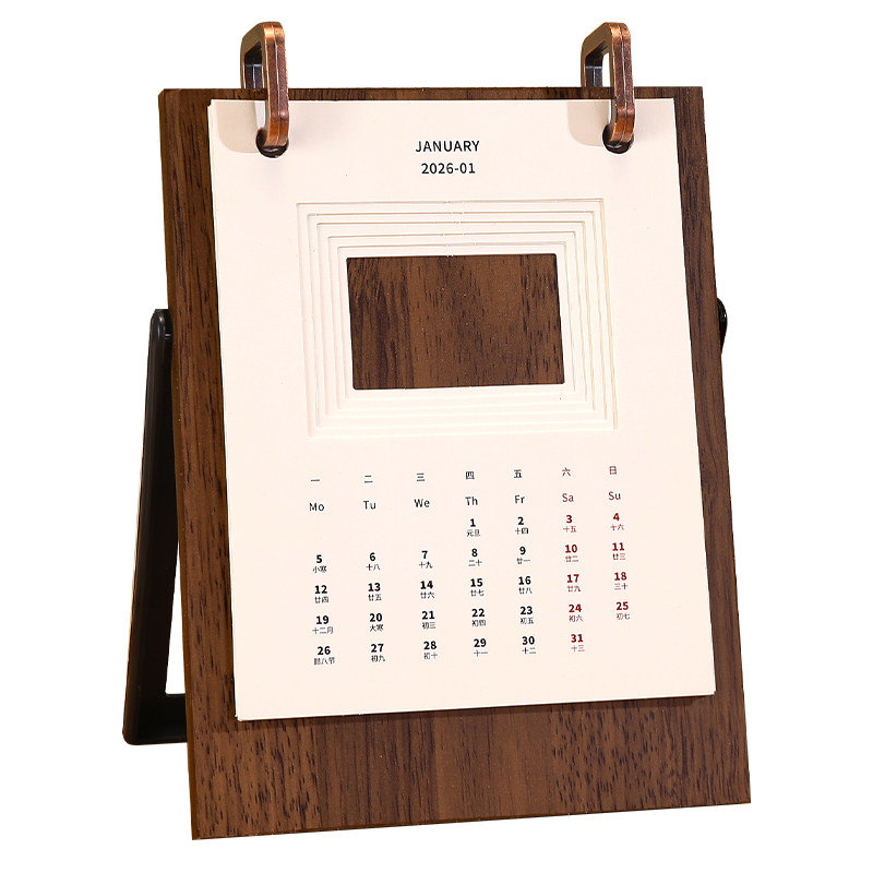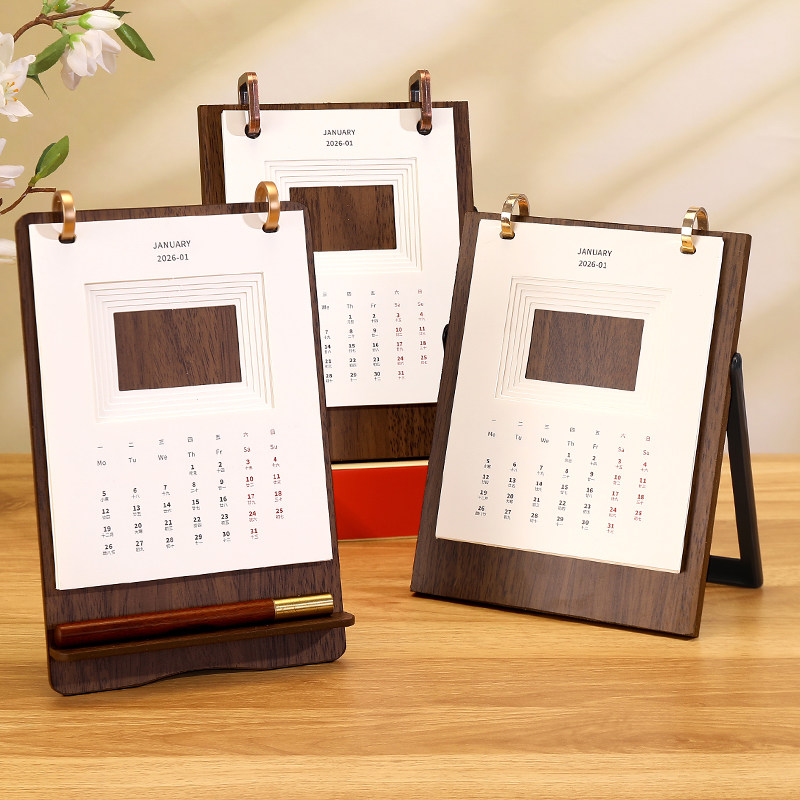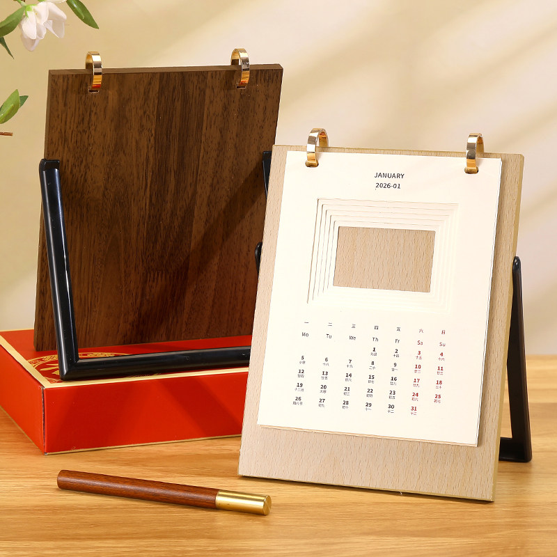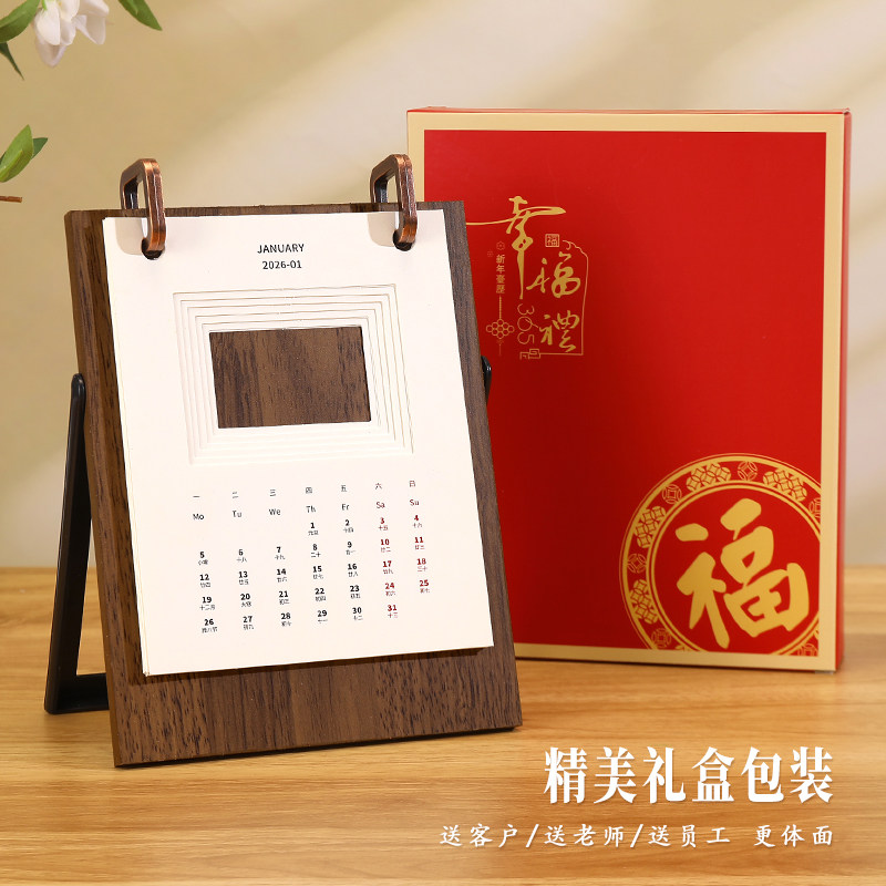 2026年新款台历定制创意中国风高档木质月历订制桌面摆件马年台历日历创意记事本年历计划本公司企业定做LOGO