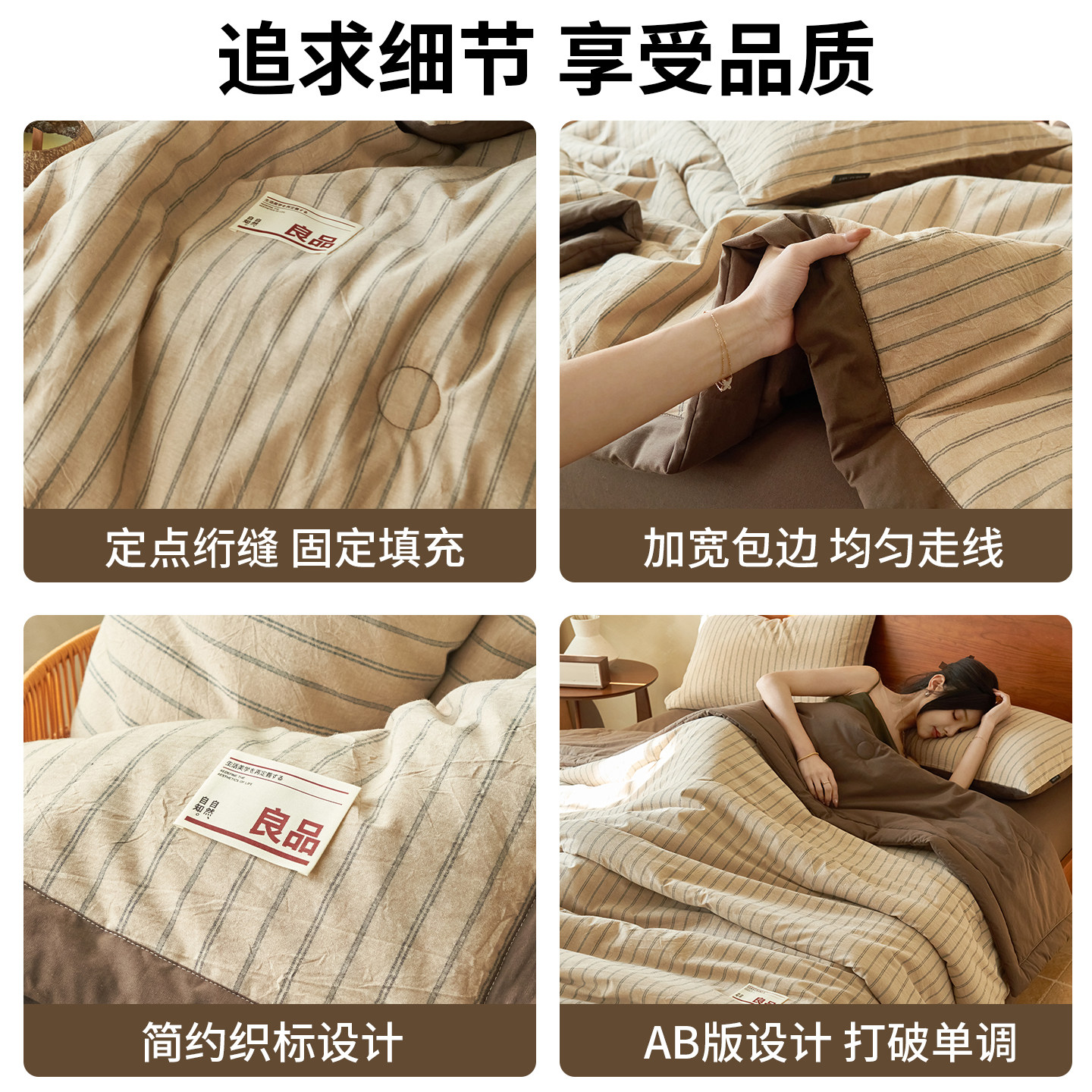 无印良品A类里外全棉春秋被子纯棉棉花空调夏凉被学生宿舍四件套