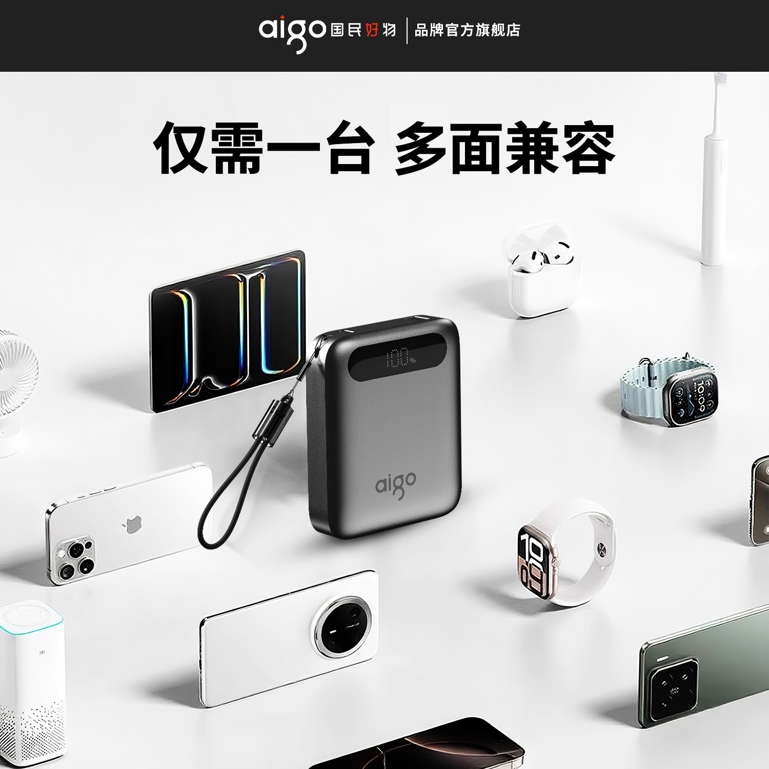 【充电宝3C认证可上飞机】爱国者充电宝小巧便携自带线大容量快充20000毫安可上飞机移动电源迷你10000毫安