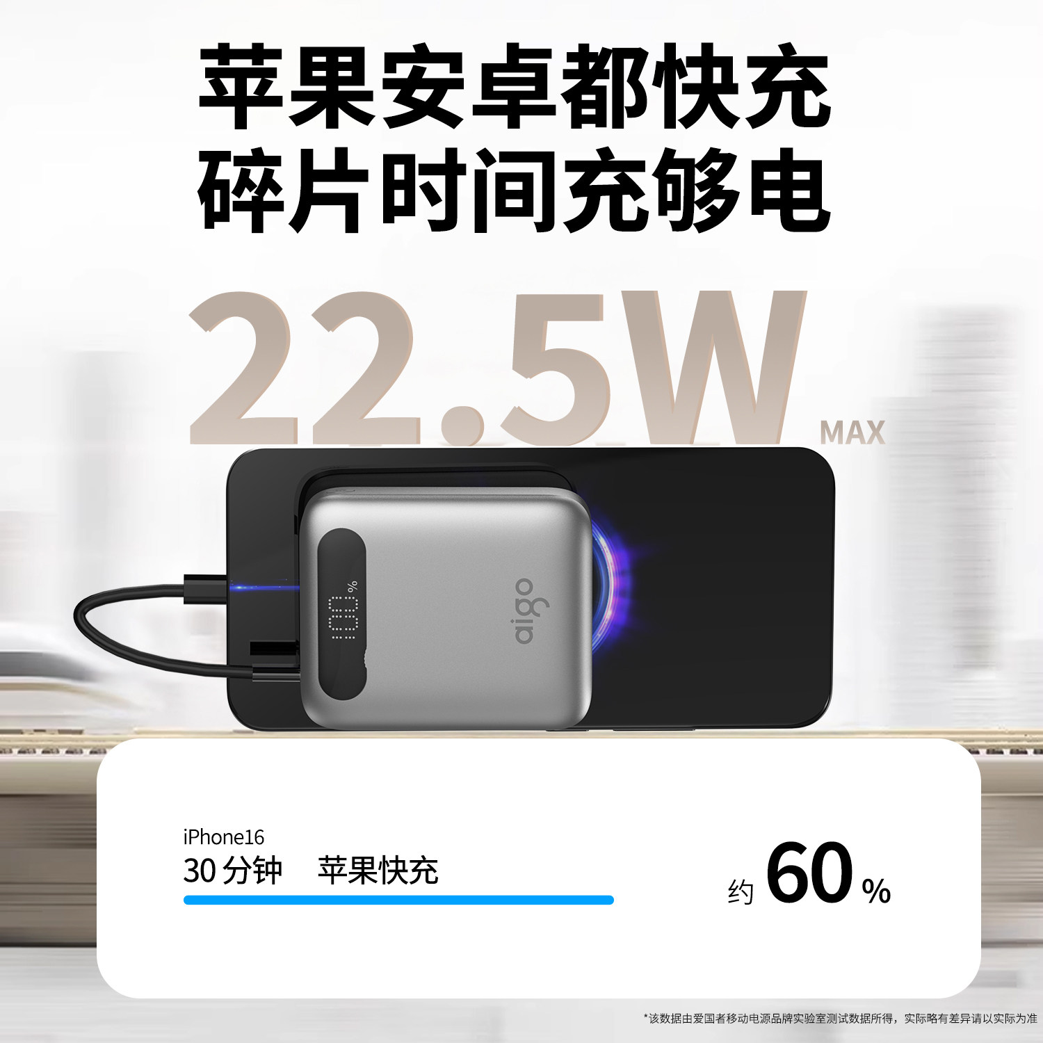 【充电宝3C认证可上飞机】政府补贴15%品胜mini小相机2025新款迷你超薄小巧便携自带线快充适用华为苹果小米