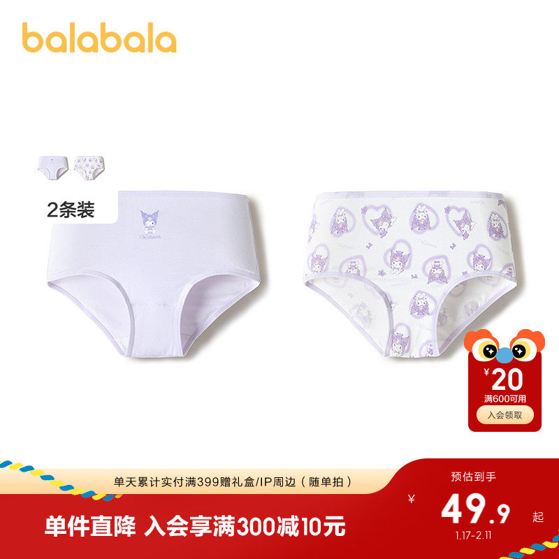 【库洛米IP联名】巴拉巴拉女童内裤平角三角四角儿童短裤两条装潮
