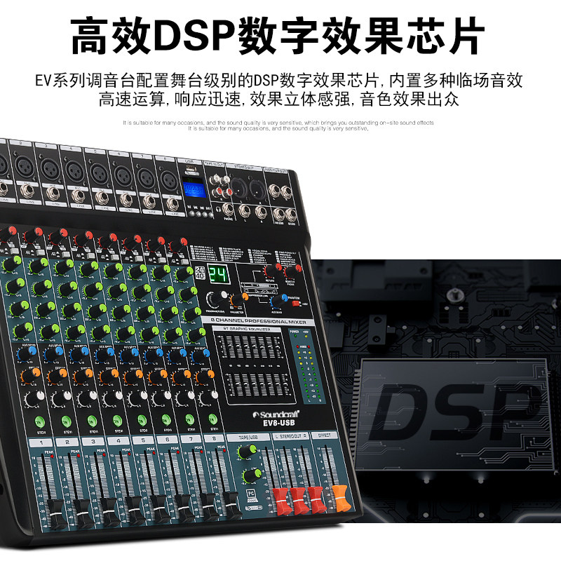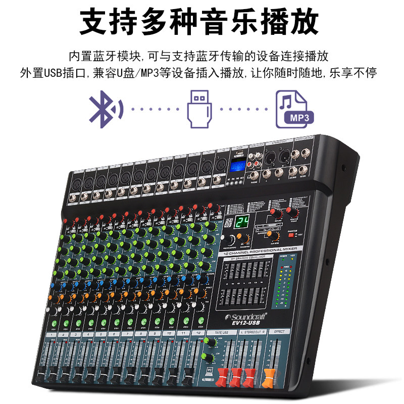 声艺EV8 12 16路调音台带USB24种数字效果婚庆舞台演出音响包邮