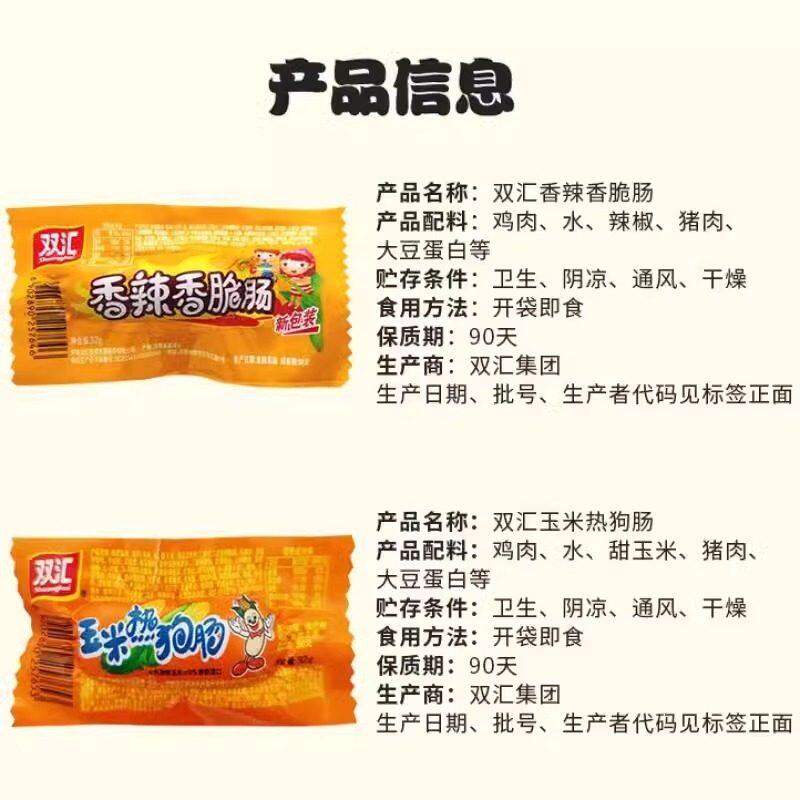 双汇火腿玉米热狗肠32g即食香辣烤肠小吃零食泡面搭档整箱批发夜