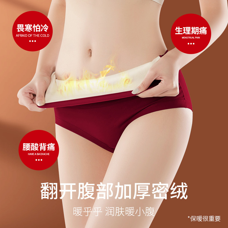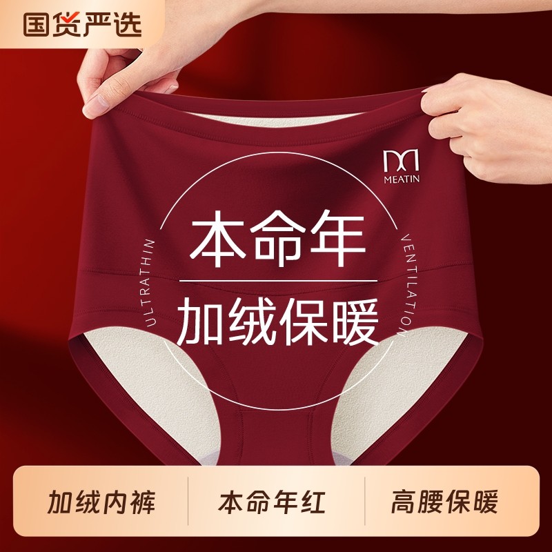 本命年红色纯棉加绒内裤女款高腰保暖加厚护腰护臀冬季属马短抗菌