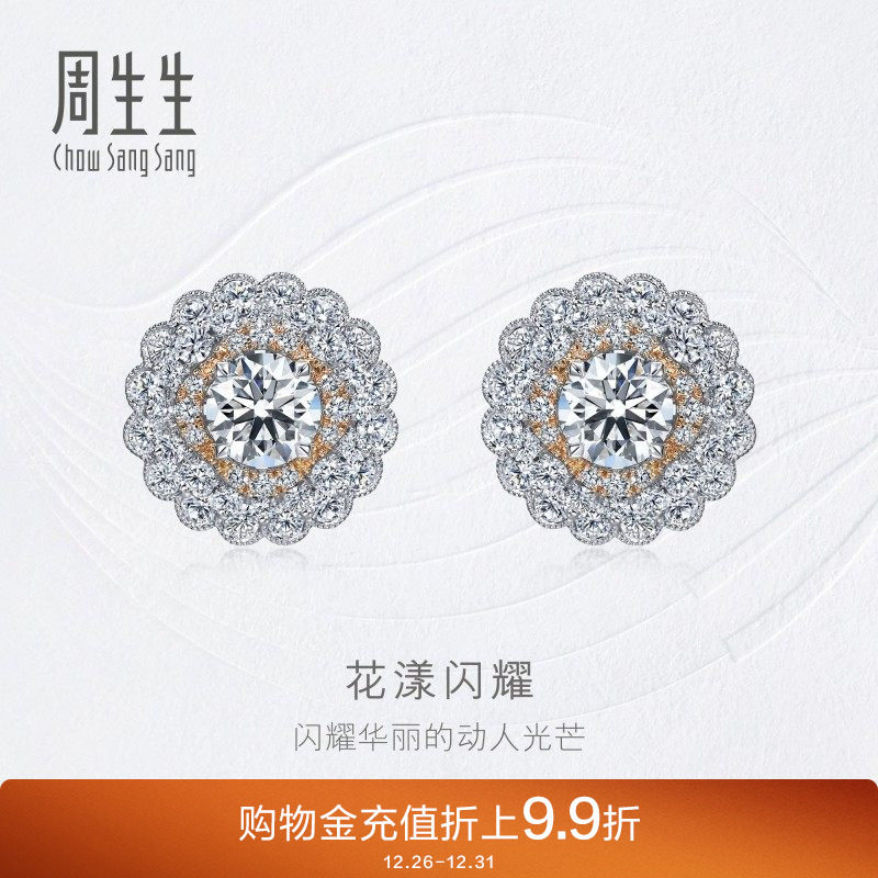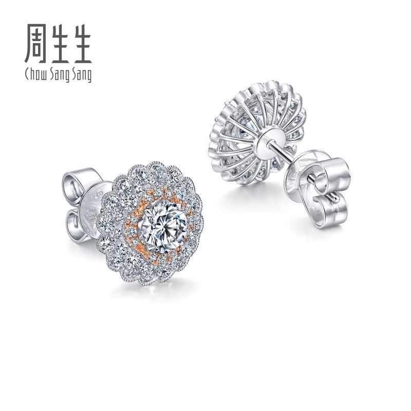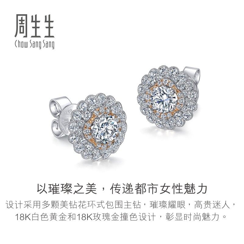周生生钻之颂华丽之颂花漾闪耀18K金钻石耳钉93910E