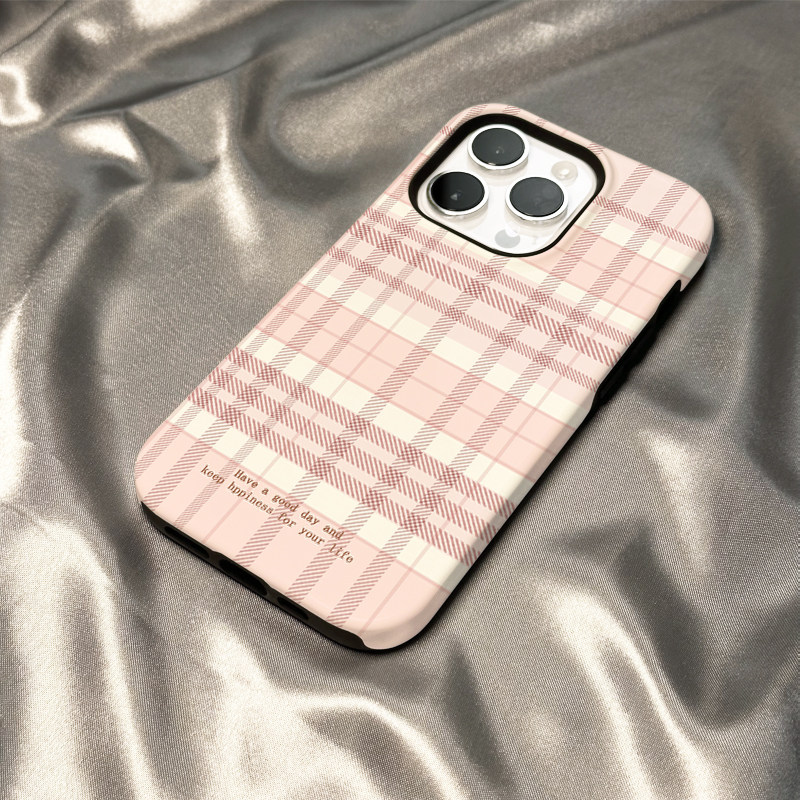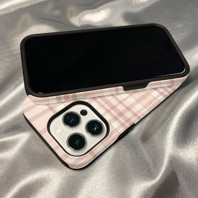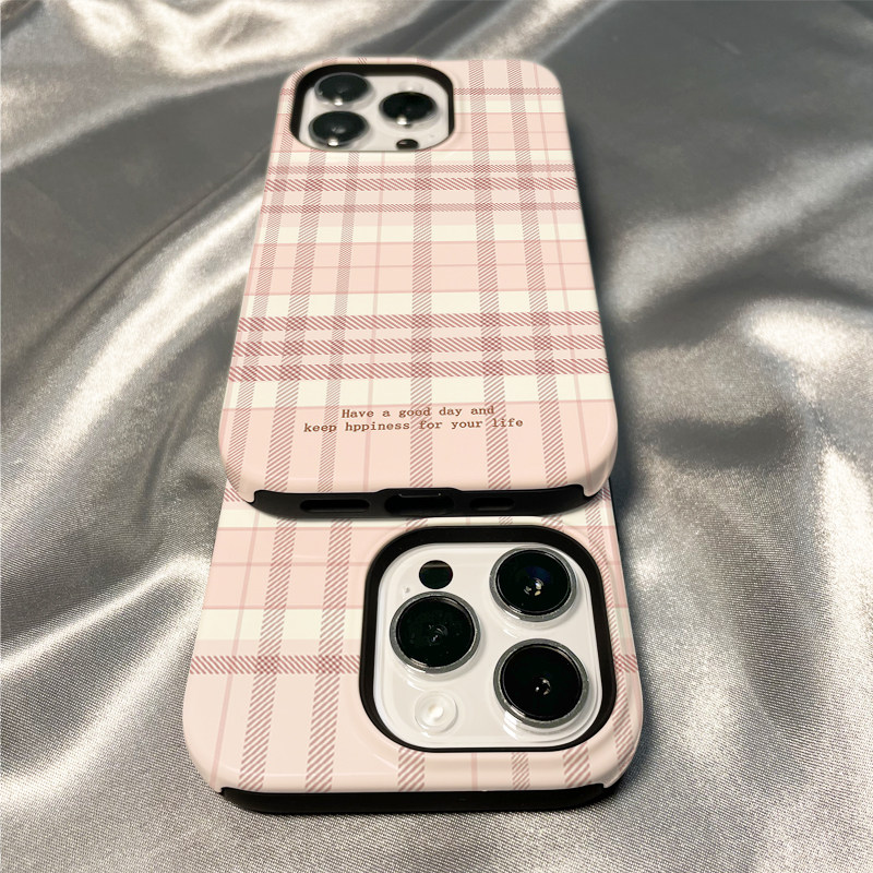 二合一菲林壳适用于苹果15promax手机壳16新款iPhone17/14/13日韩ins粉色格纹12硬11女xs保护套xr防摔硅胶