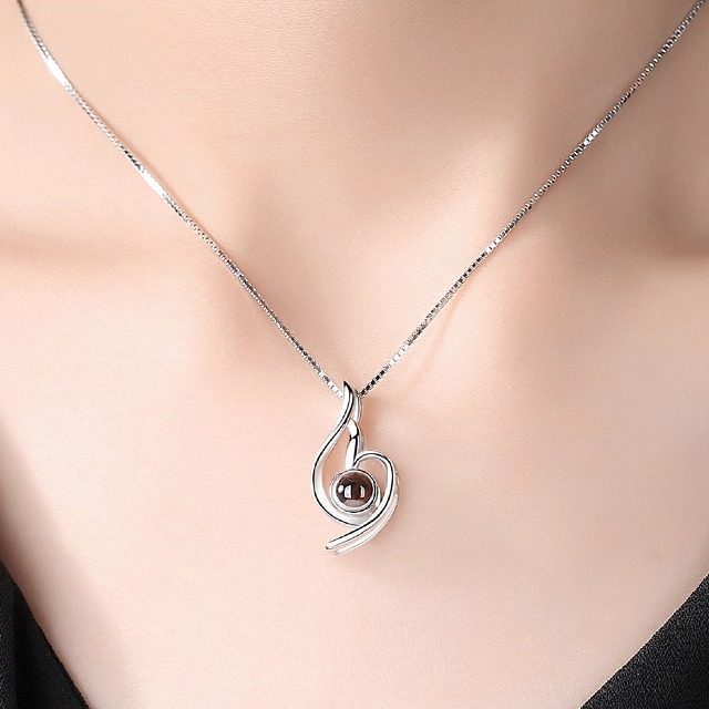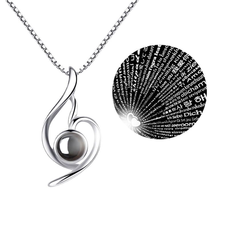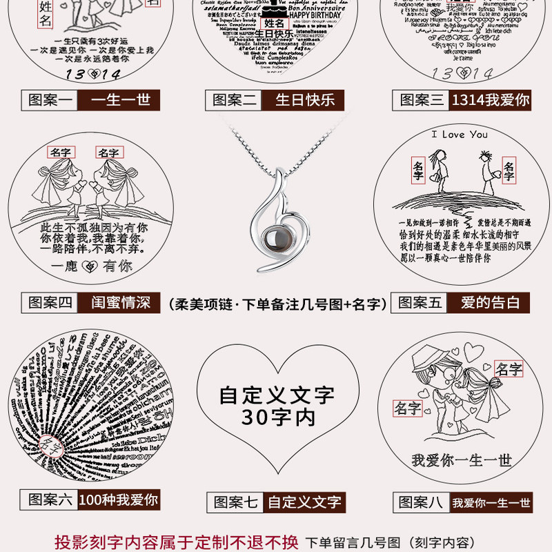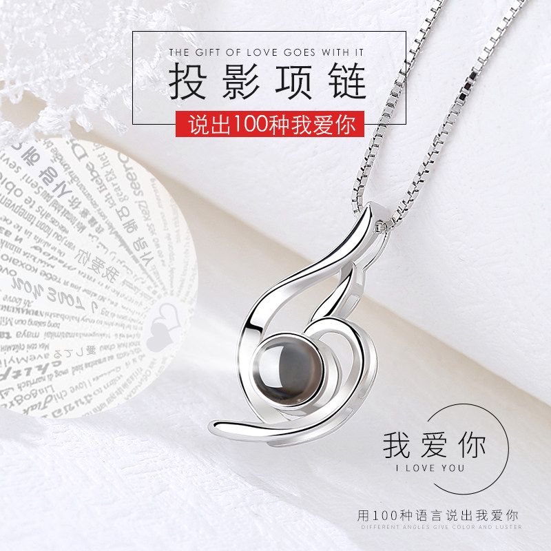 纯银项链女投影100种我爱你七夕情人节礼物送女友闺蜜七夕节生日