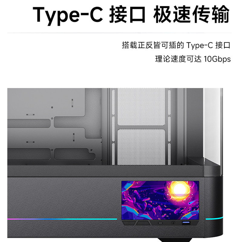 丛林豹AC-02海景房机箱5.5寸高清屏幕弧曲面形玻璃背插主板Type-C