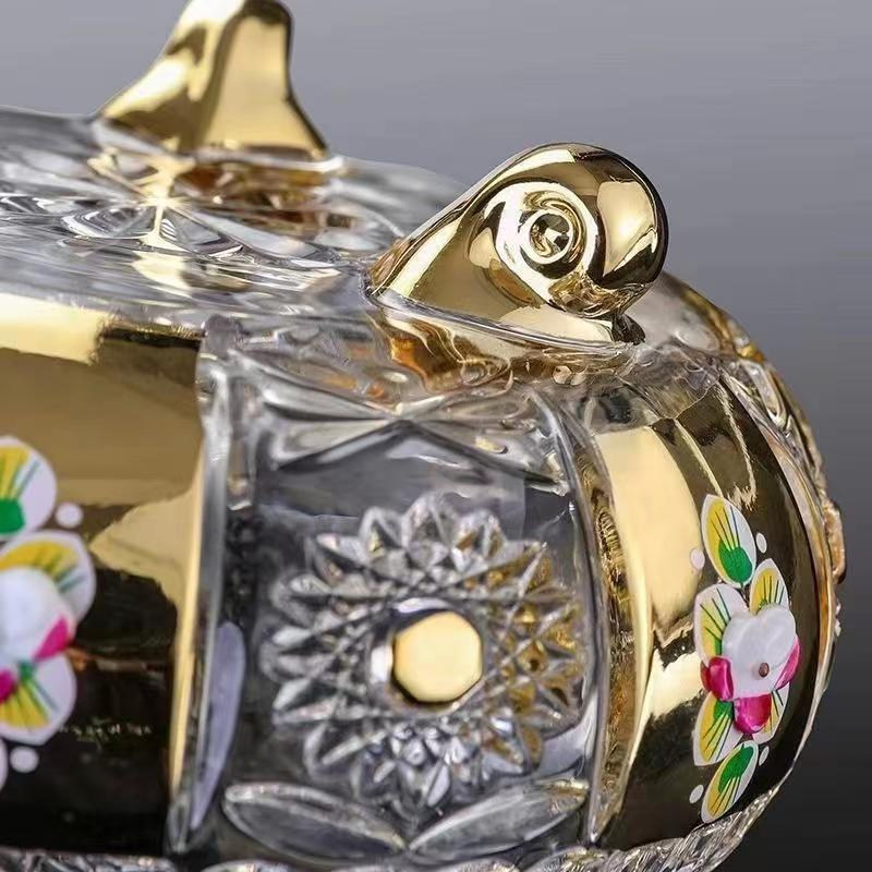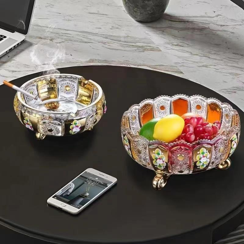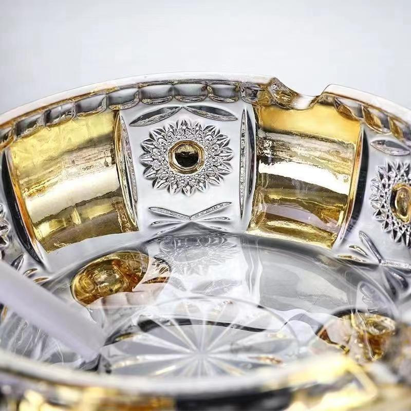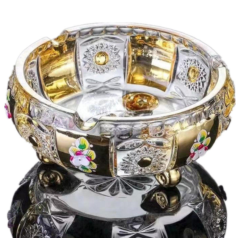 欧式镀金珐琅法兰花水晶玻璃 精刻烟灰缸男士烟灰缸家用