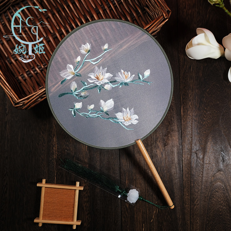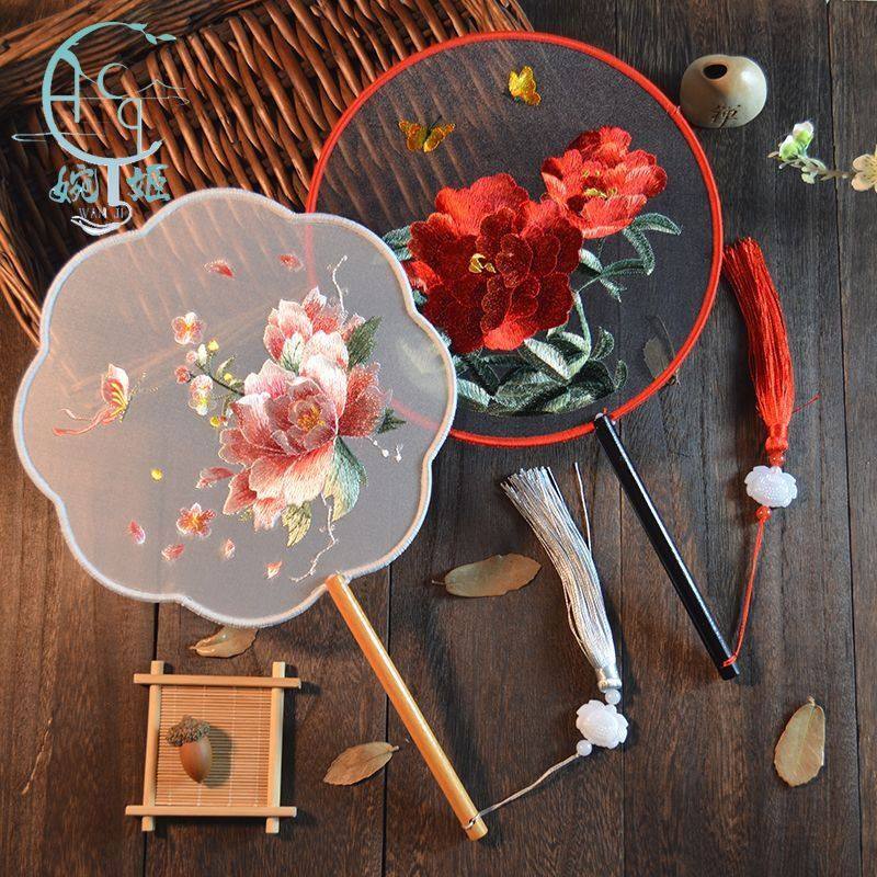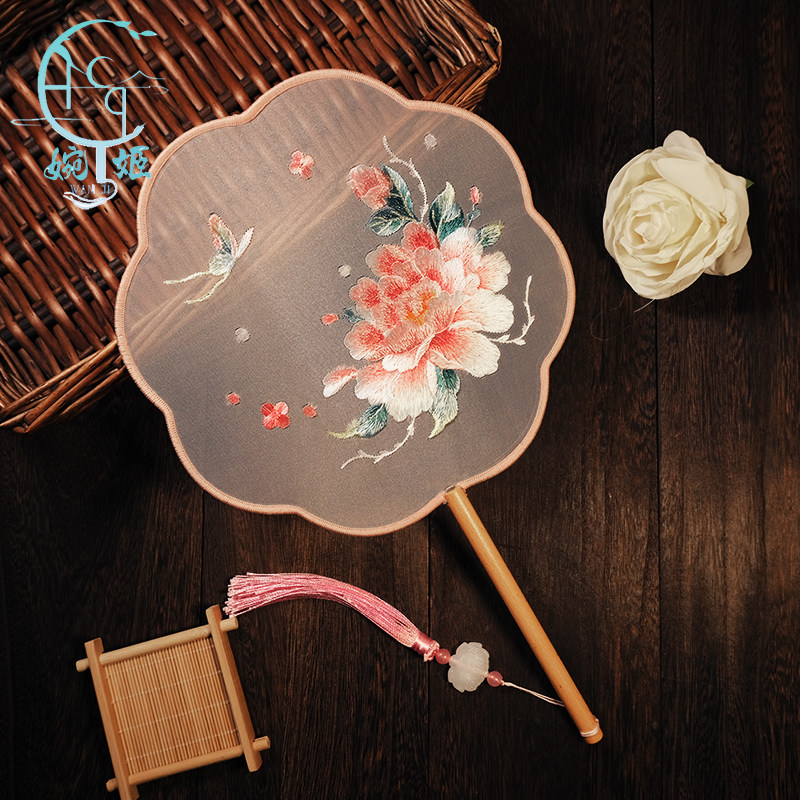 中国风苏绣双面绣粉嫩仙子团扇新品扇子古风绣花工艺扇舞蹈扇