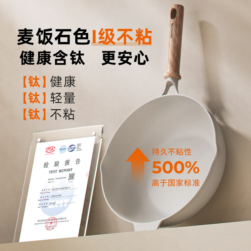 康巴赫有钛铁锅不粘锅无涂层炒锅家用炒菜锅电磁炉燃气专用锅子